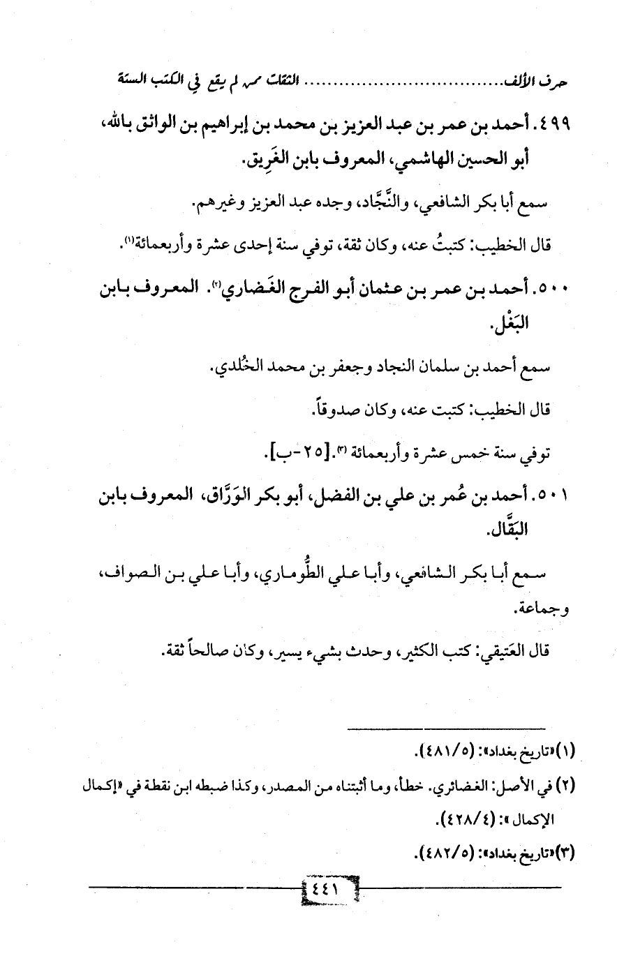 (¬3) «تاريخ بغداد»: (5/ 482).