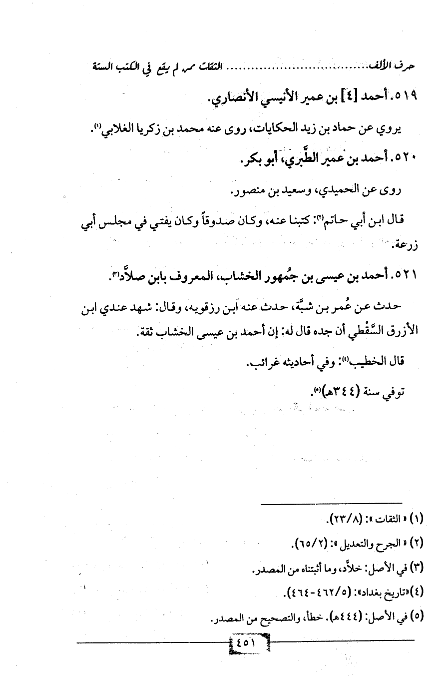 521 - أحمد بن عيسى بن جُمهور الخشاب، المعروف بابن صلاَّد (¬3).