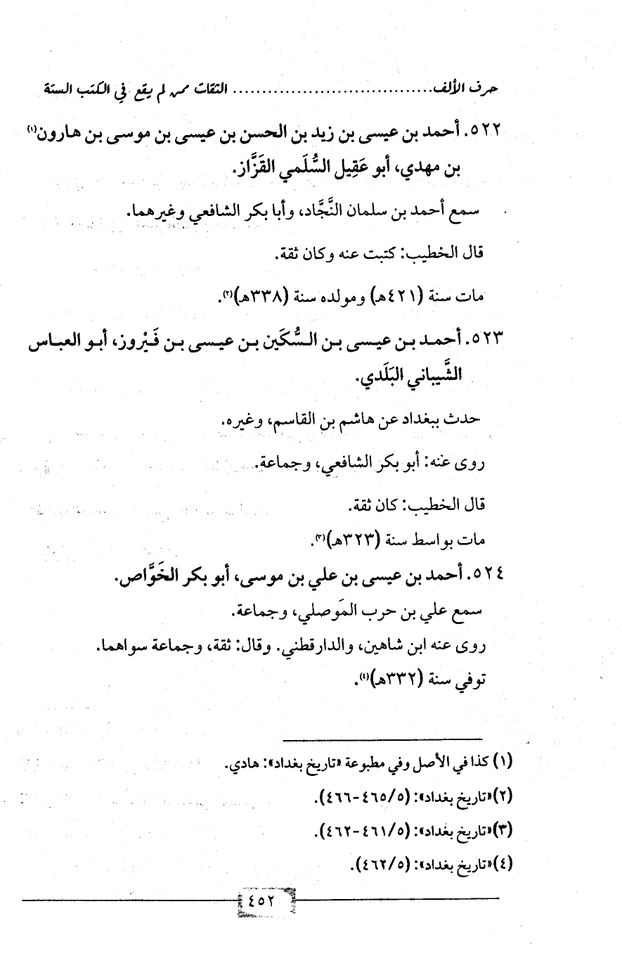 (¬4) «تاريخ بغداد»: (5/ 462).