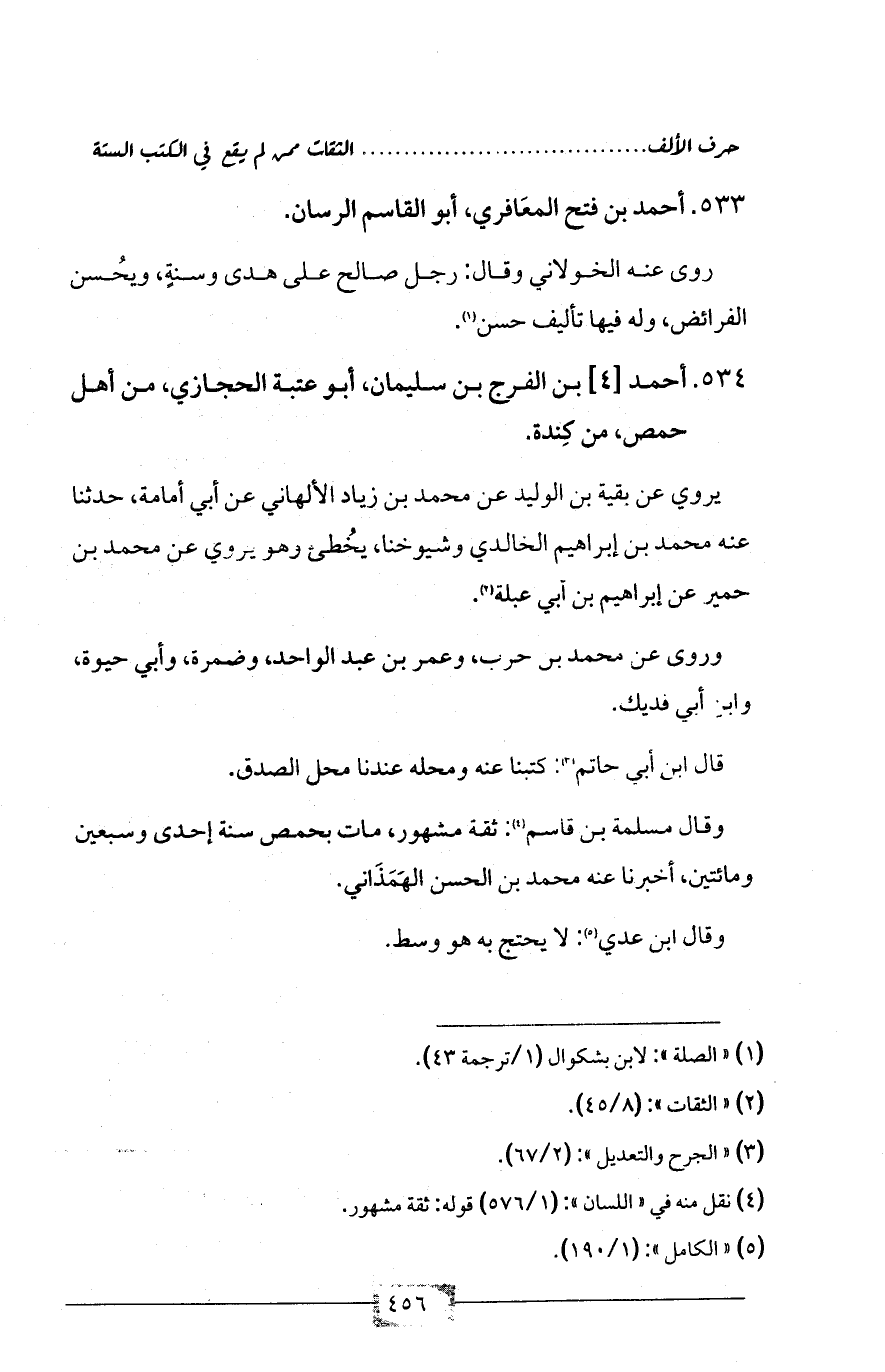 534 - أحمد [4] بن الفرج بن سليمان، أبو عتبة الحجازي، من أهل حمص، من كِندة.