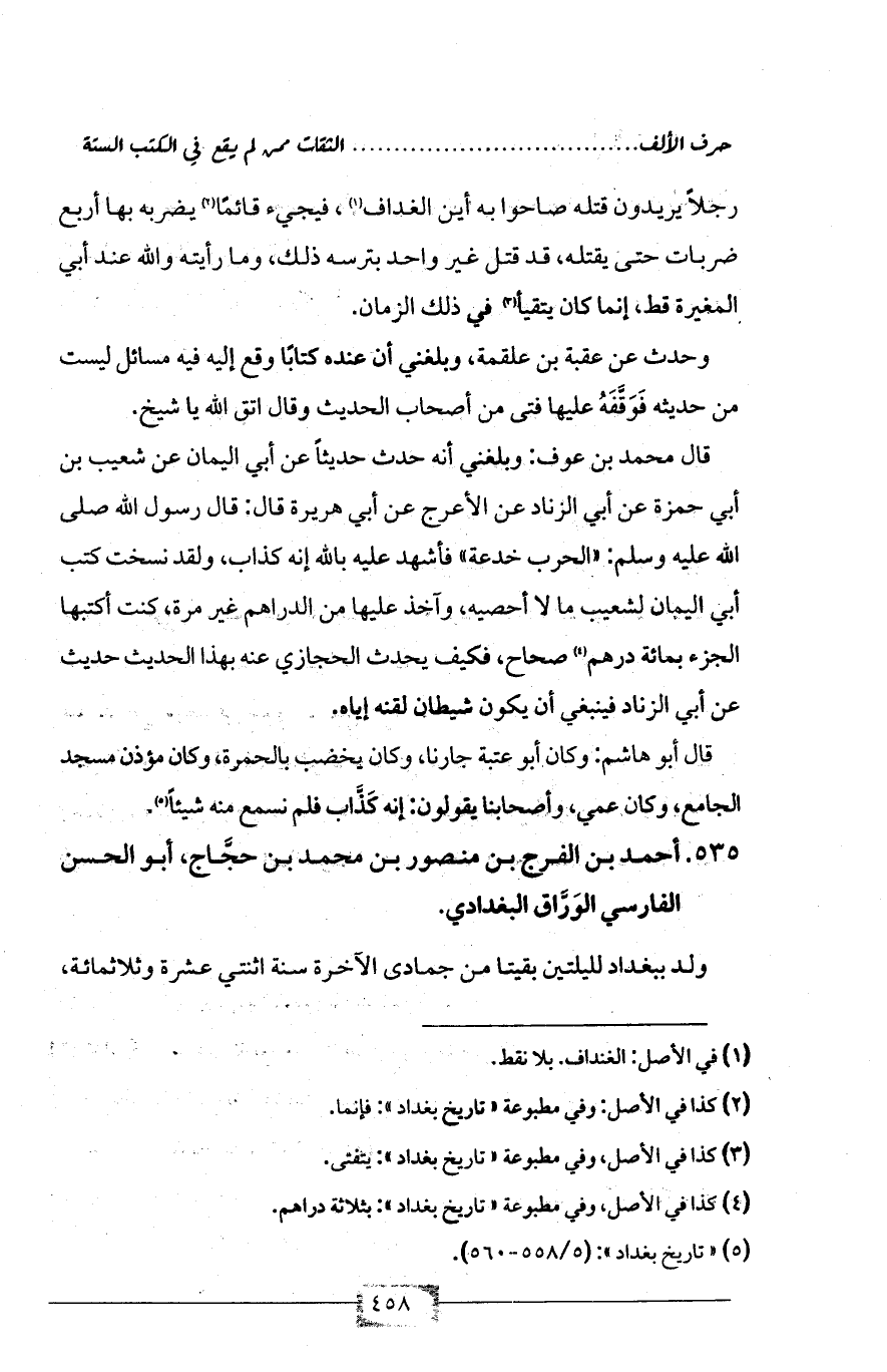 535 - أحمد بن الفرج بن منصور بن محمد بن حجَّاج، أبو الحسن الفارسي الوَرَّاق البغدادي.