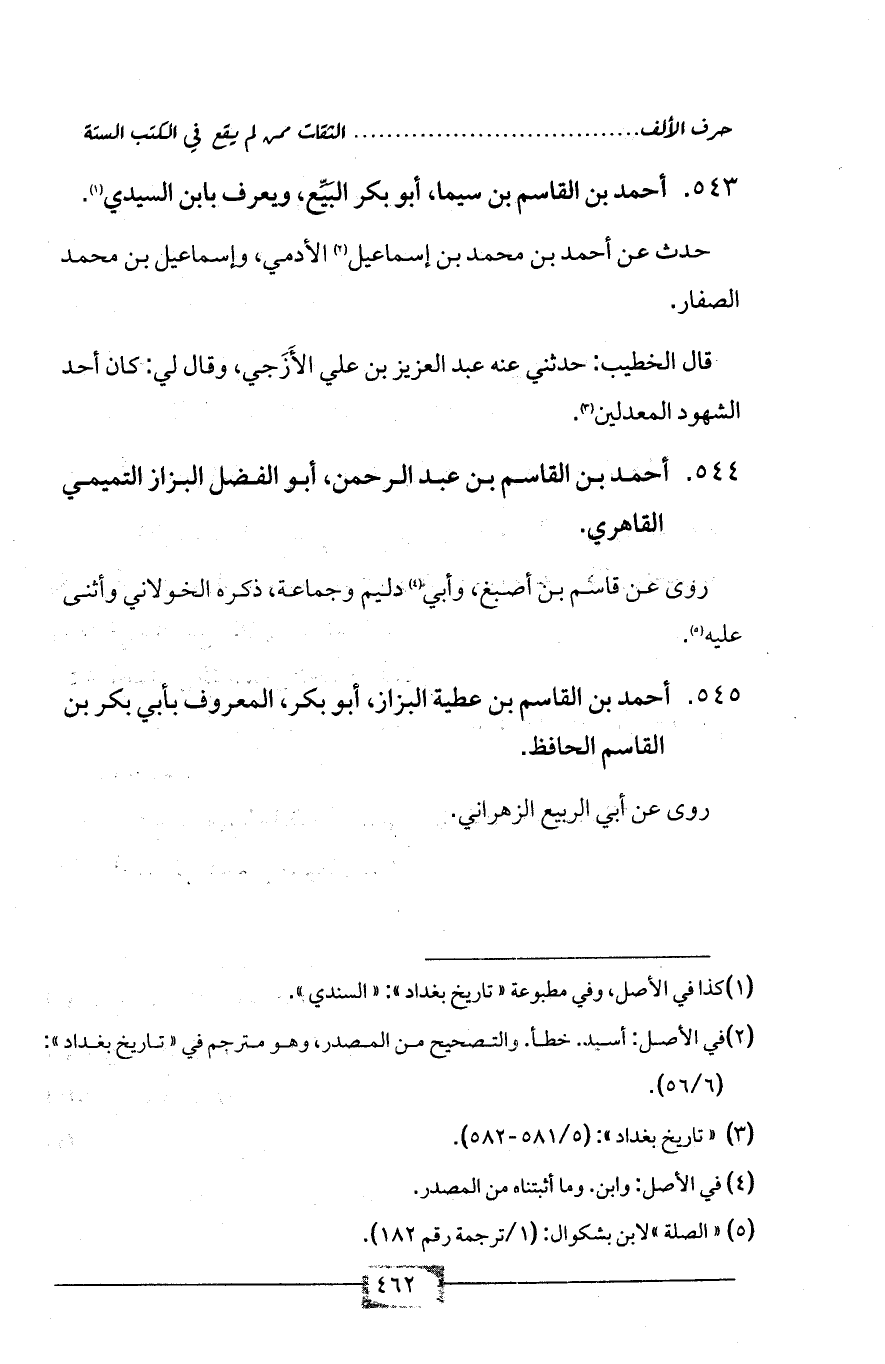 543 - أحمد بن القاسم بن سيما، أبو بكر البَيِّع، ويعرف بابن السيدي (¬1).