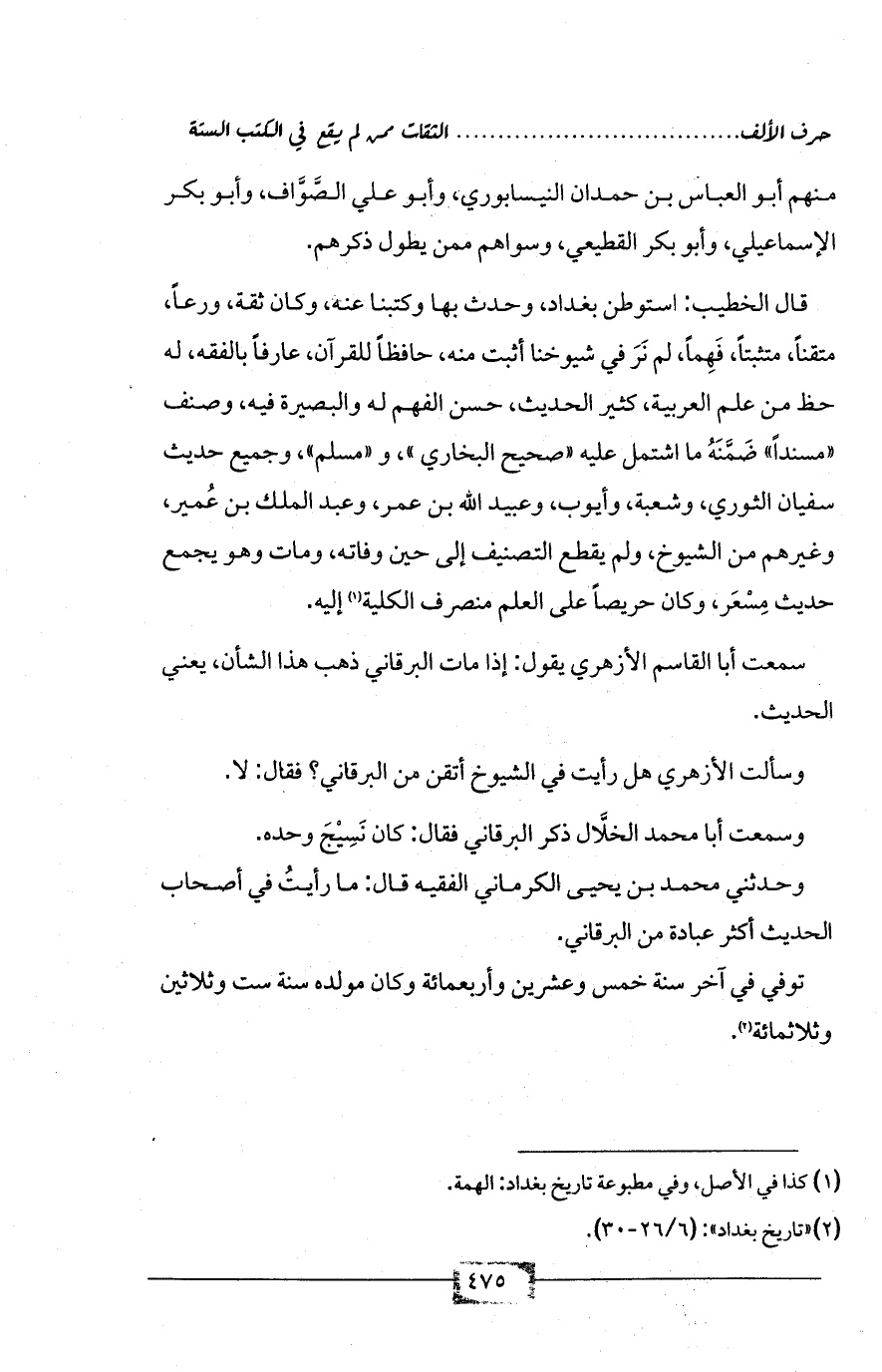 (¬2) «تاريخ بغداد»: (6/ 26 - 30).