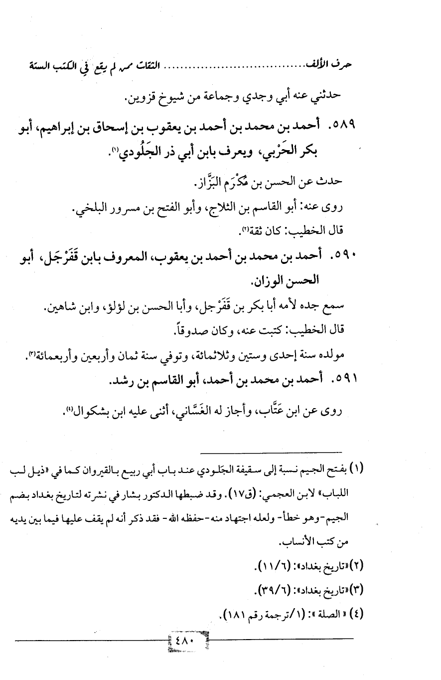 590 - أحمد بن محمد بن أحمد بن يعقوب، المعروف بابن قَفَرْجَل، أبو الحسن الوزان.