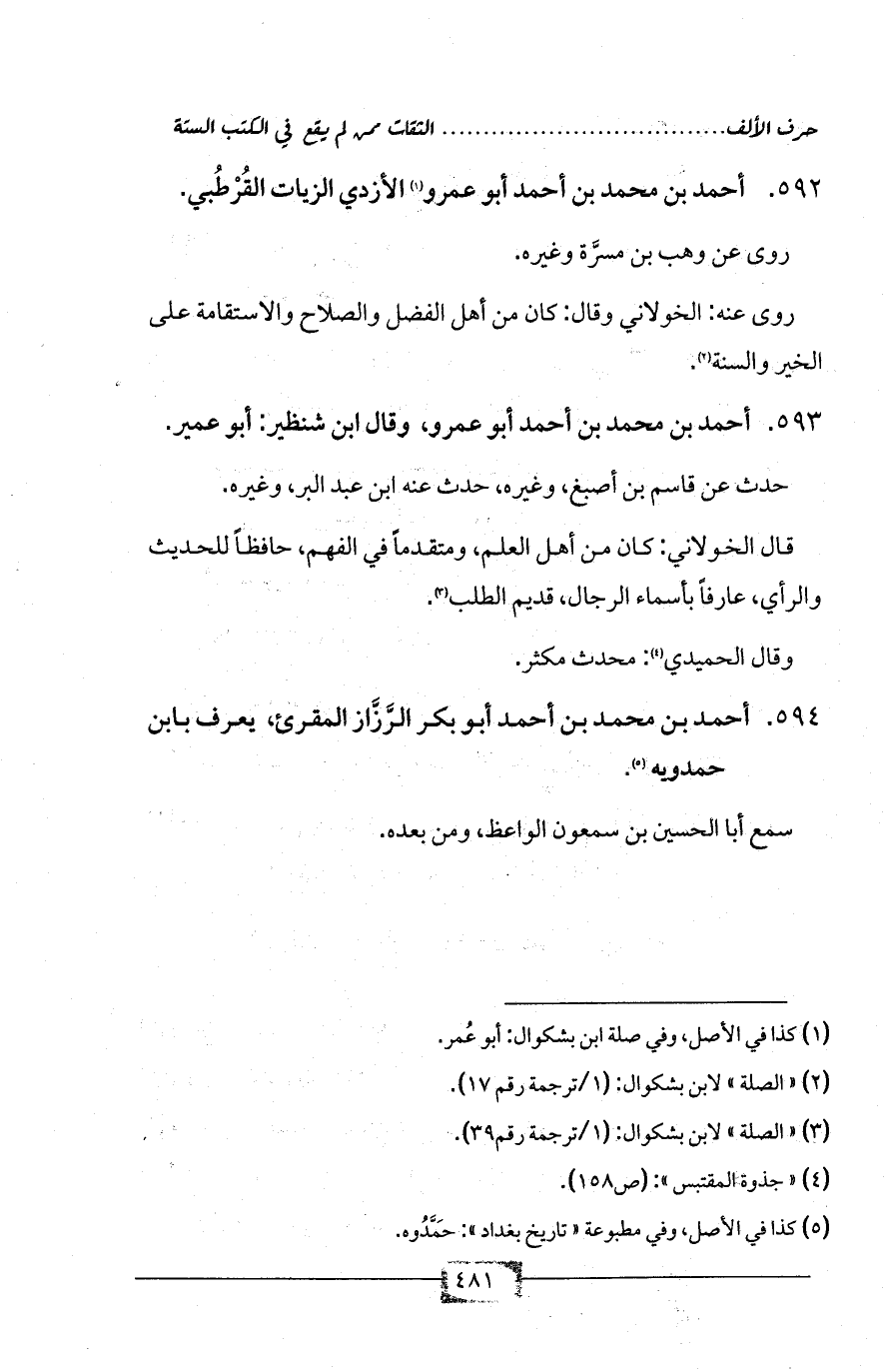 593 - أحمد بن محمد بن أحمد أبو عمرو، وقال ابن شنظير: أبو عمير.