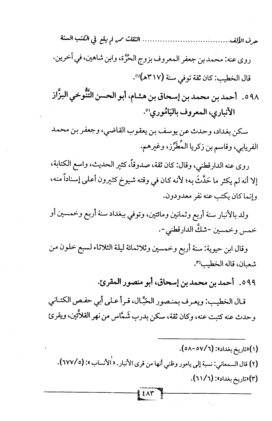 (¬1) «تاريخ بغداد»: (6/ 57 - 58).