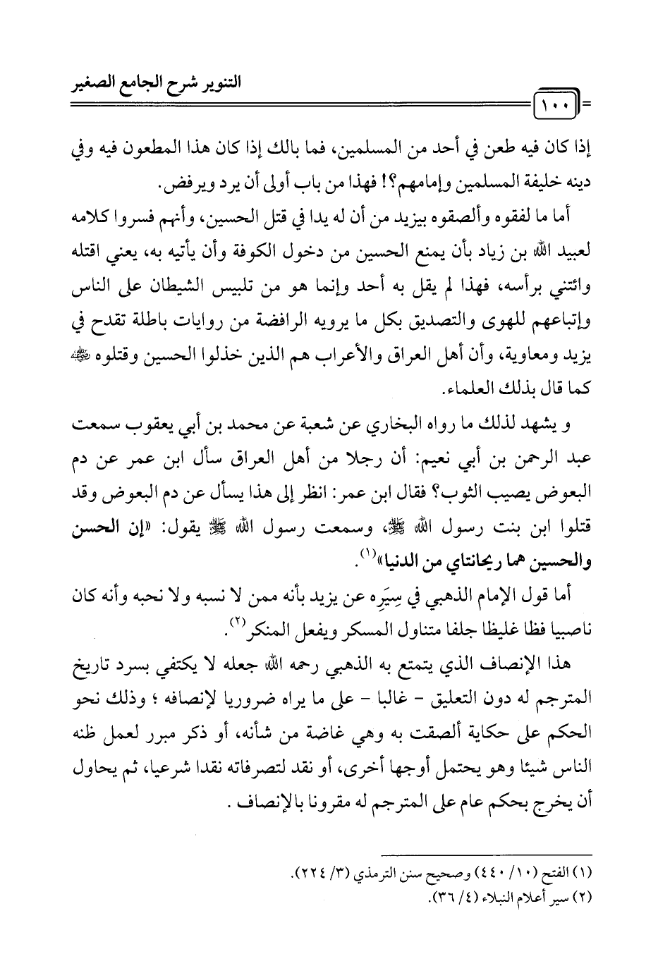 ويشهد لذلك ما رواه البخاري عن شعبة عن محمَّد بن أبي يعقوب سمعت عبد الرحمن بن أبي نعيم: أن رجلاً من أهل العراق سأل ابن عمر عن دم البعوض يصيب الثوب؟ فقال ابن عمر: انظر إلى هذا يسأل عن دم البعوض وقد قتلوا ابن بنت رسول الله - صلى الله عليه وسلم -، وسمعت رسول الله - صلى الله عليه وسلم - يقول: "إن الحسن والحسين هما ريحانتاي من الدنيا" (¬1).