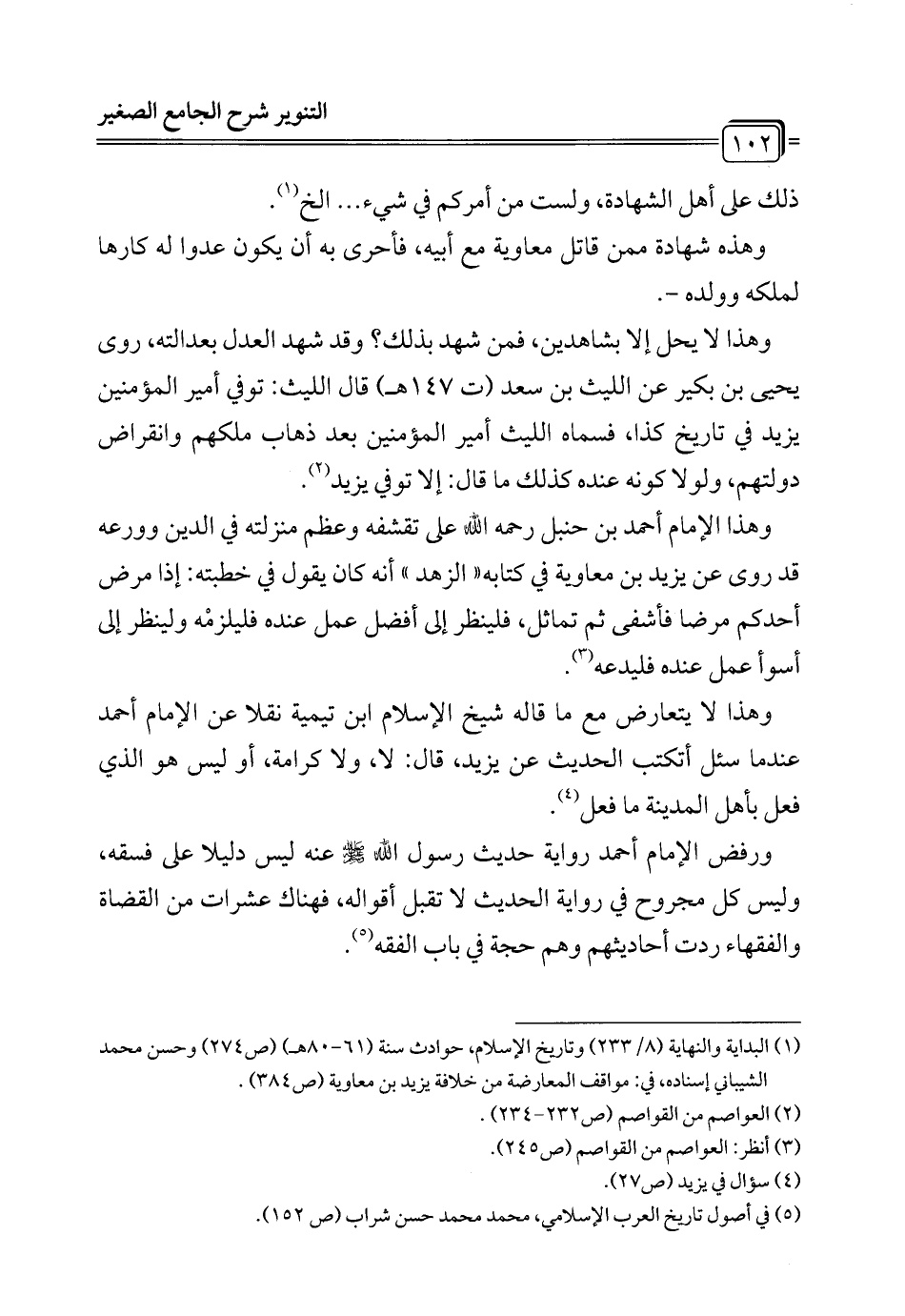 وهذا لا يتعارض مع ما قاله شيخ الإِسلام ابن تيمية نقلا عن الإِمام أحمد عندما سئل أتكتب الحديث عن يزيد، قال: لا، ولا كرامة، أو ليس هو الذي فعل بأهل المدينة ما فعل (¬4).