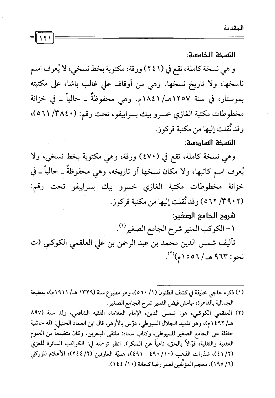 (¬1) ذكره حاجي خليفة في كشف الظنون (1/ 560)، وهو مطبوع سنة (1329 هـ/ 1911 م)، بمطبعة الجمالية بالقاهرة، بهامش فيض القدير شرح الجامع الصغير.