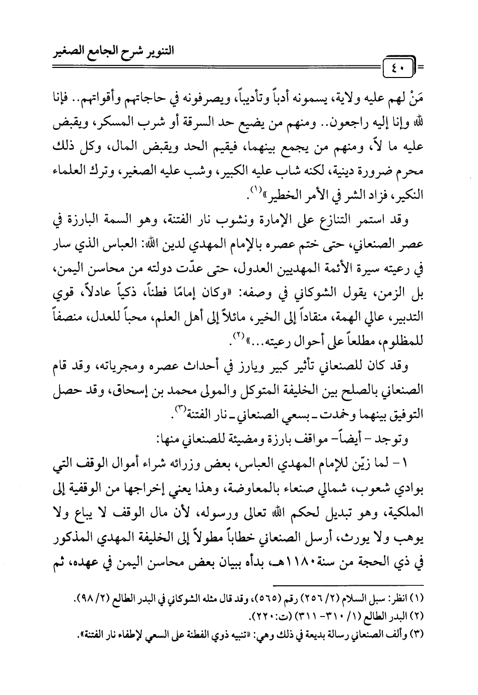 (¬1) انظر: سبل السلام (2/ 256) رقم (565)، وقد قال مثله الشوكاني في البدر الطالع (2/ 98).