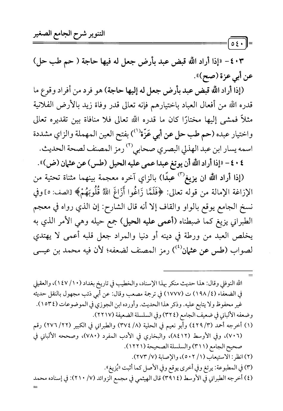 403 - " إذا أراد الله قبض عبد بأرض جعل له فيها حاجة (حم طب حل) عن أبي عزة (صح) ".