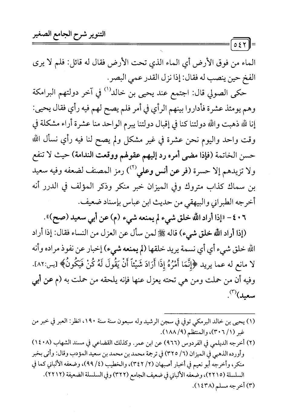 406 - " إذا أراد الله خلق شيء لم يمنعه شيء (م) عن أبي سعيد (صح) ".