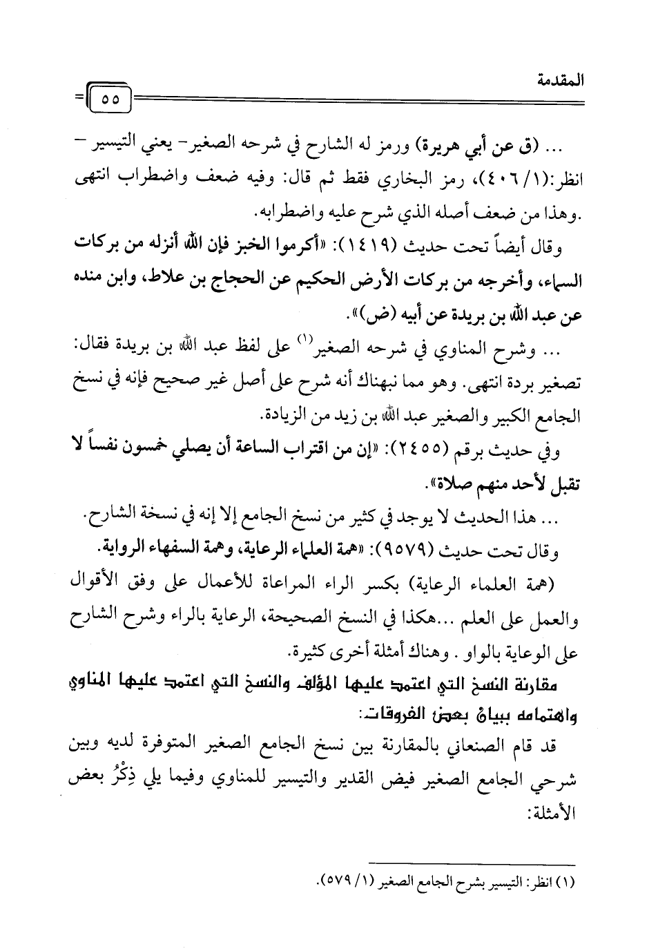 مقارنة النسخ التي اعتمد عليها المؤلف والنسخ التي اعتمد عليها المناوي واهتمامه ببيان بعض الفروقات: