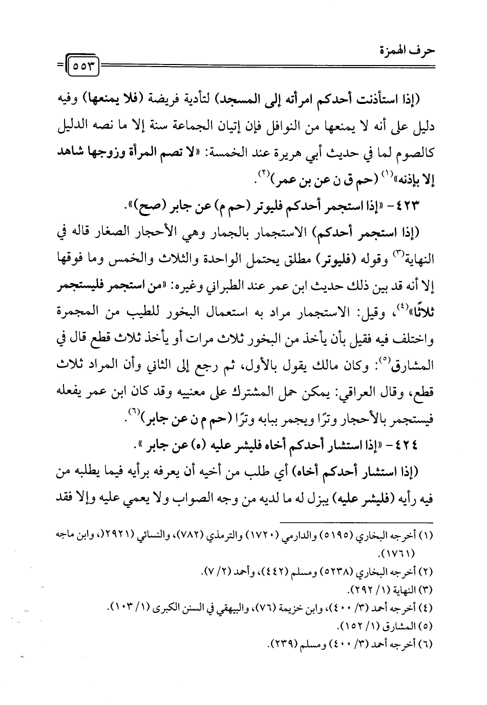 424 - " إذا استشار أحدكم أخاه فليشر عليه (5) عن جابر".