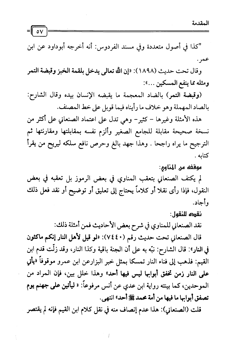 لم يكتف الصنعاني بتعقب المناوي في بعض الرموز بل تعقبه في بعض النقول، فهذا رأى نقلا أو كلاماً يحتاج إلى تعليق أو توضيح أو نقد فعل ذلك وأجاد.