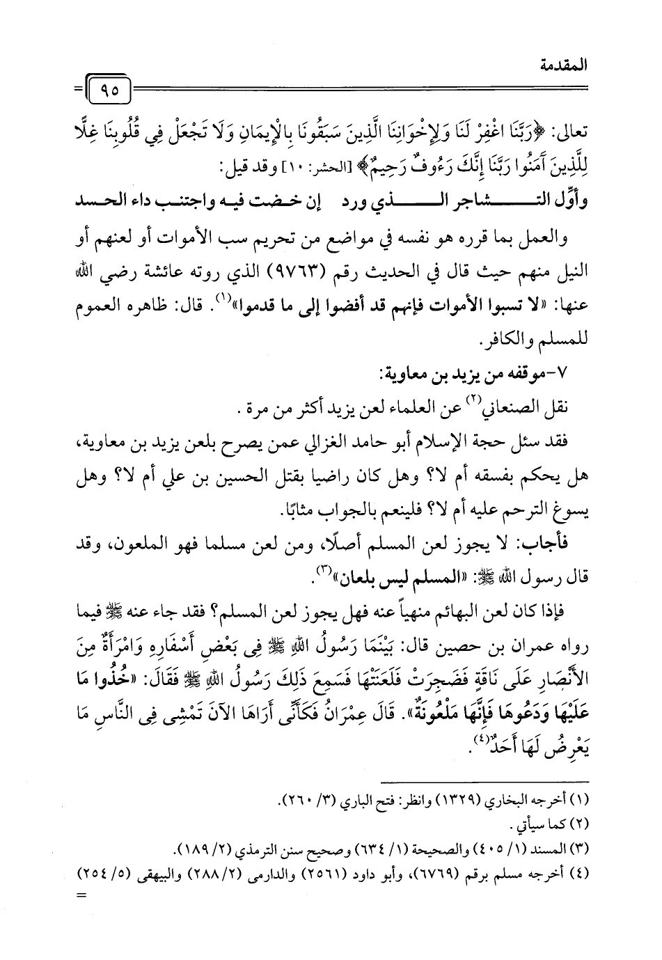 والعمل بما قرره هو نفسه في مواضع من تحريم سب الأموات أو لعنهم أو النيل منهم حيث قال في الحديث رقم (9763) الذي روته عائشة رضي الله عنها: "لا تسبوا الأموات فإنهم قد أفضوا إلى ما قدموا" (¬1). قال: ظاهره العموم للمسلم والكافر.