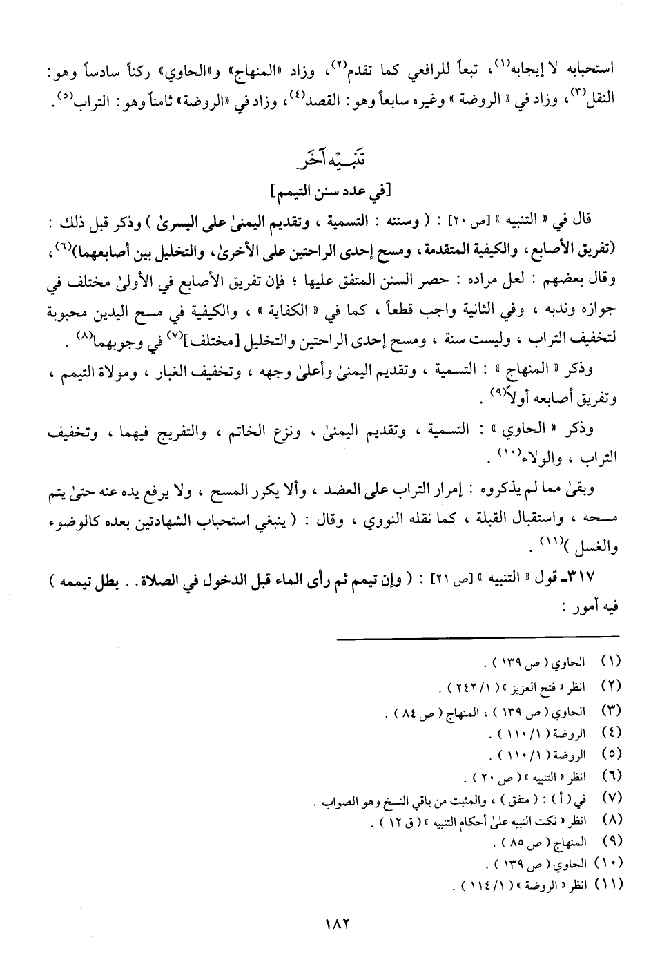 317 - قول "التنبيه" [ص 21]: (وإن تيمم ثم رأى الماء قبل الدخول في الصلاة .. بطل تيممه) فيه أمور: