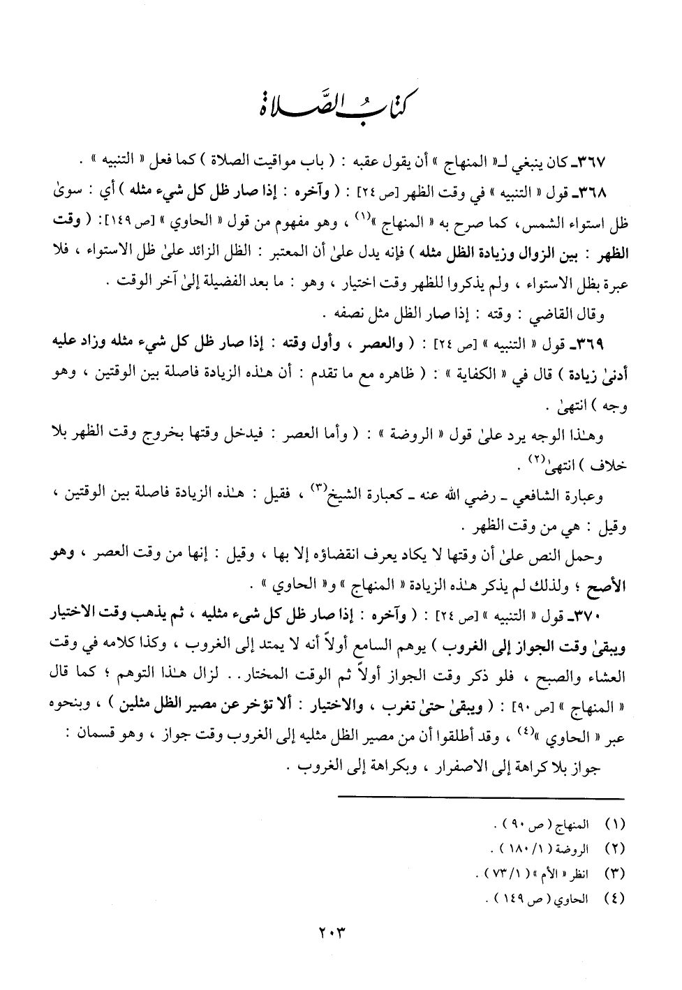 368 - قول " التنبيه " في وقت الظهر [ص 24]: (وآخره: إذا صار ظل كل شيء مثله) أي: سوى ظل استواء الشمس، كما صرح به " المنهاج " (¬1)، وهو مفهوم من قول " الحاوي " [ص 149]: (وقت الظهر: بين الزوال وزيادة الظل مثله) فإنه يدل على أن المعتبر: الظل الزائد على ظل الاستواء، فلا عبرة بظل الاستواء، ولم يذكروا للظهر وقت اختيار، وهو: ما بعد الفضيلة إلى آخر الوقت.