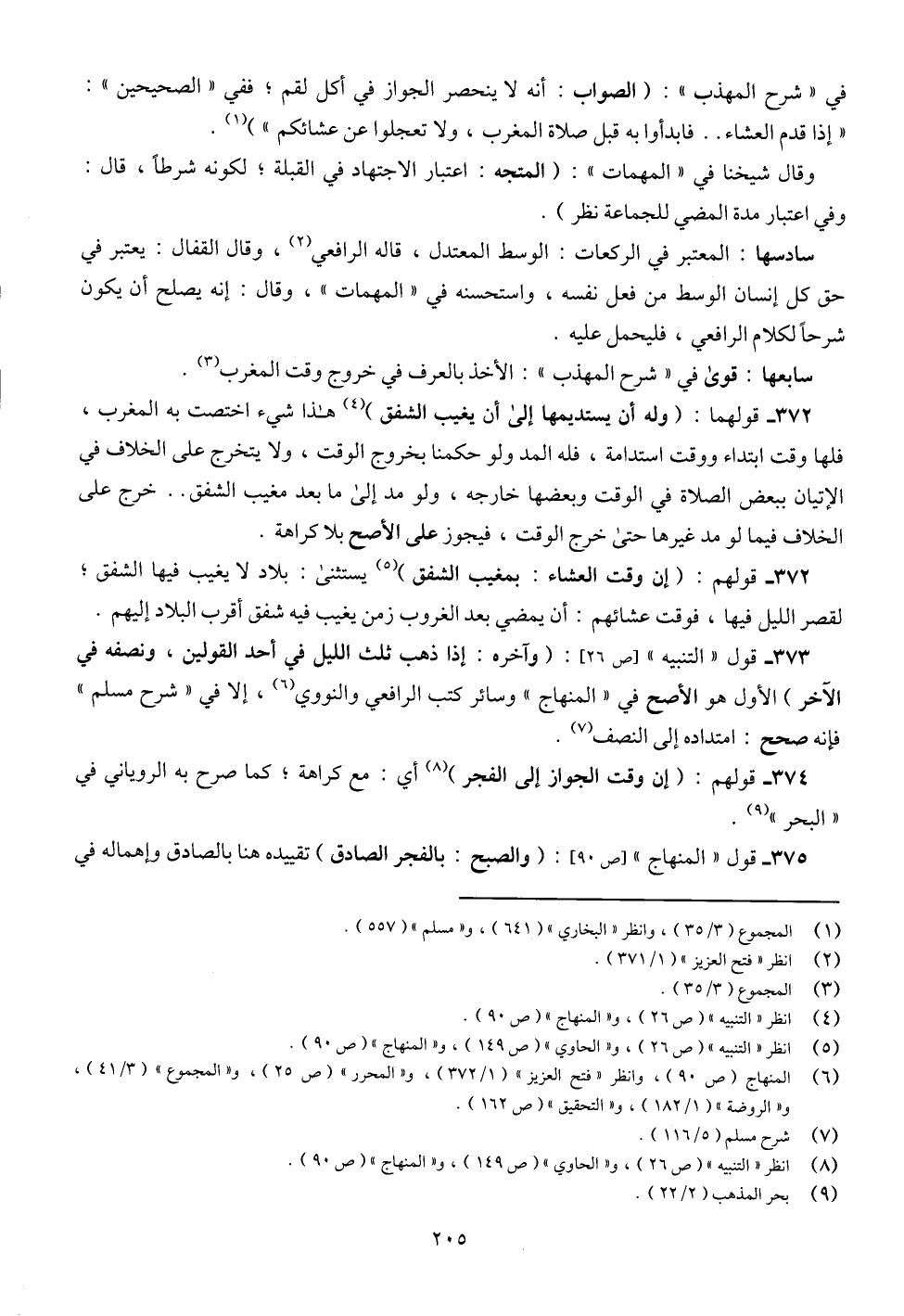 374 - قولهم: (إن وقت الجواز إلى الفجر) (¬8) أي: مع كراهة، كما صرح به الروياني في "البحر" (¬9).