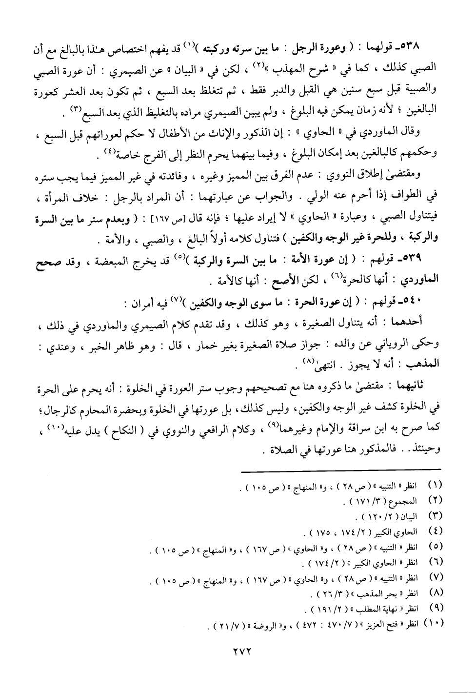 539 - قولهم: (إن عورة الأمة: ما بين السرة والركبة) (¬5) قد يخرج المبعضة، وقد صحح الماوردي: أنها كالحرة (¬6)، لكن الأصح: أنها كالأمة.