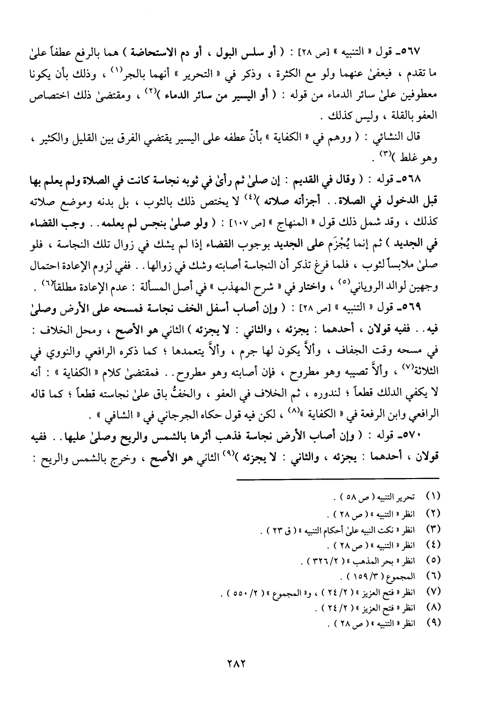 567 - قول " التنبيه " [ص 28]: (أو سلس البول، أو دم الاستحاضة) هما بالرفع عطفاً على ما تقدم، فيعفى عنهما ولو مع الكثرة، وذكر في " التحرير " أنهما بالجر (¬1)، وذلك بأن يكونا معطوفين على سائر الدماء من قوله: (أو اليسير من سائر الدماء) (¬2)، ومقتضى ذلك اختصاص العفو بالقلة، وليس كذلك.