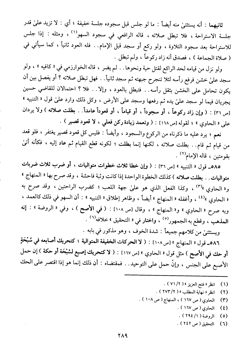 586 - قول " المنهاج " [ص 108]: (لا الحركات الخفيفة المتوالية؛ كتحريك أصابعه في سُبْحَةٍ أو حك في الأصح) مثل قول " الحاوي " [ص 167]: (لا كتحريك إصبع لسُبْحَة أو حكة) إن حمل الأصبع على الجنس، وإنْ حمل على التوحيد .. فمقتضاه: أن ذلك إنما هو إذا اقتصر على الحك