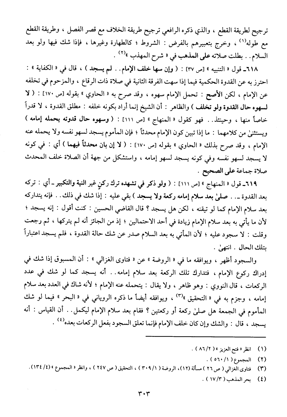 (¬3) فتاوى الغزالي (ص 26) مسألة (12)، الروضة (1/ 309)، التحقيق (ص 247)، وانظر "المجموع" (4/ 134).