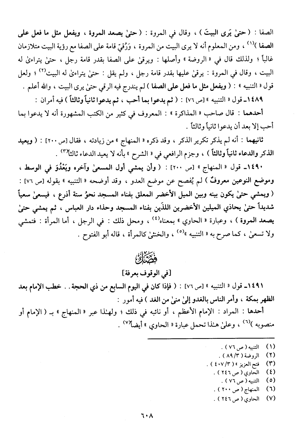 1491 - قول "التنبيه" [ص 76]: (فإذا كان في اليوم السابع من ذي الحجة .. خطب الإمام بعد الظهر بمكة، وأمر الناس بالغدو إلى منى من الغد) فيه أمور: