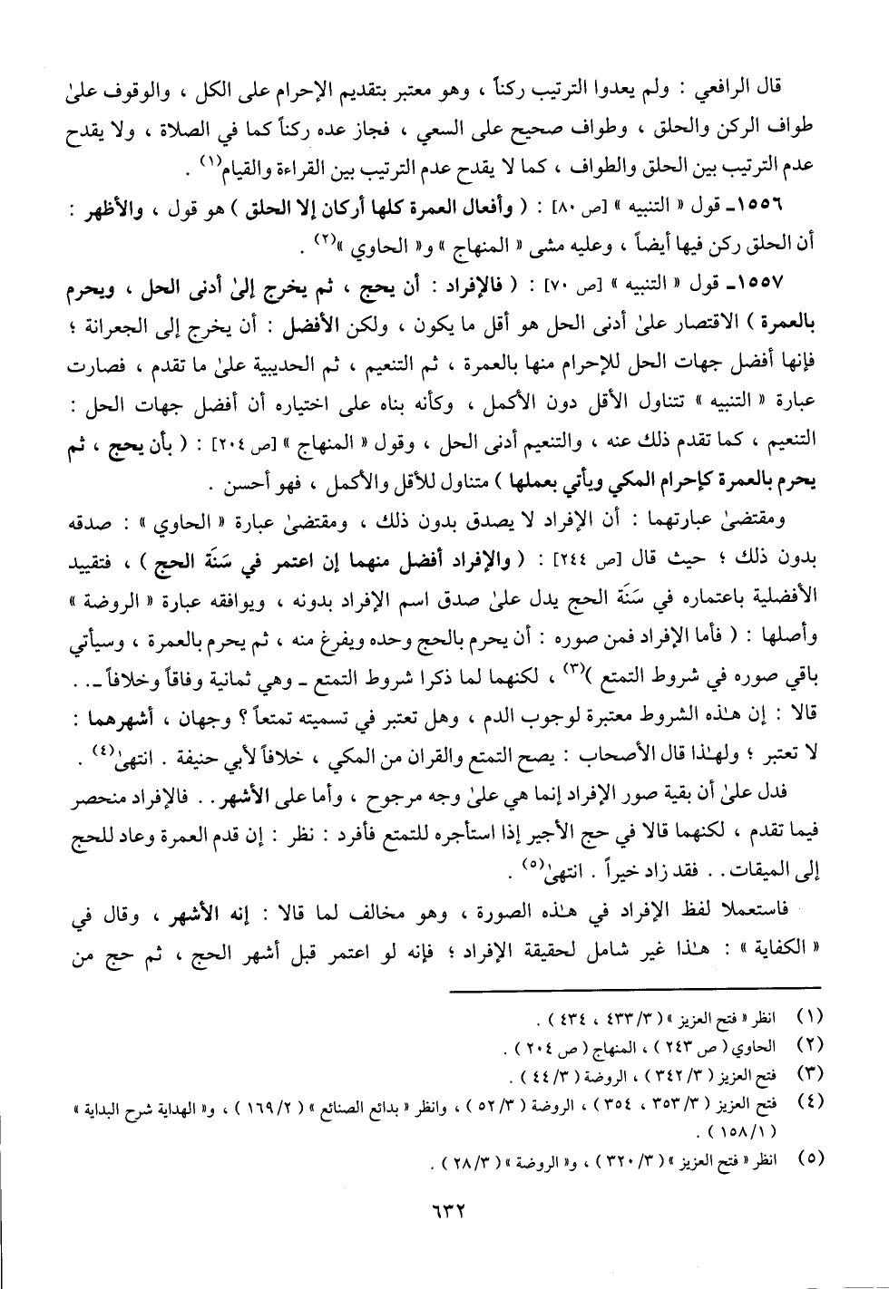 1556 - قول "التنبيه" [ص 80]: (وأفعال العمرة كلها أركان إلا الحلق) هو قول، والأظهر: أن الحلق ركن فيها أيضًا، وعليه مشى "المنهاج" و"الحاوي" (¬2).