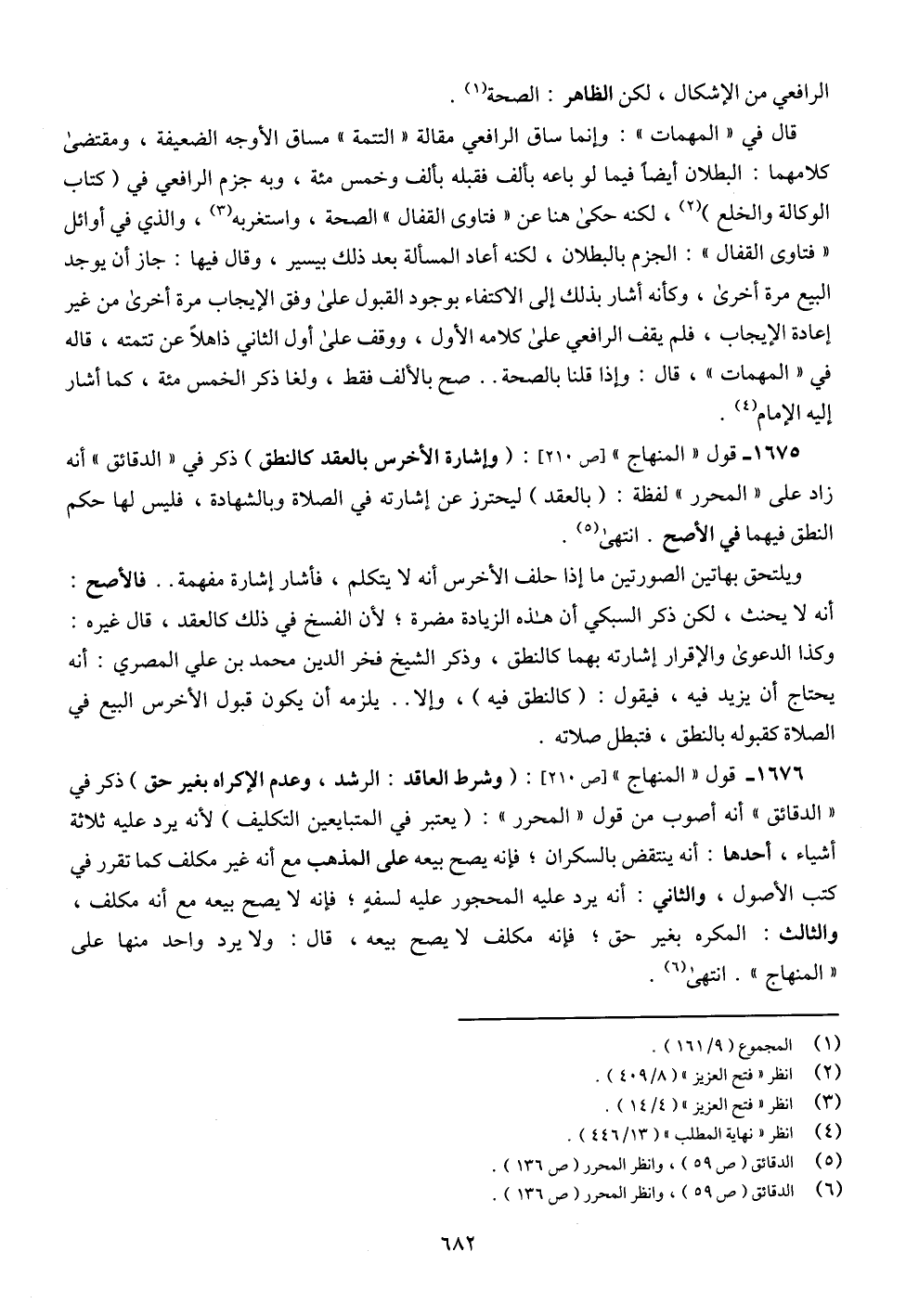 1676 - قول "المنهاج" [ص 210]: (وشرط العاقد: الرشد، وعدم الإكراه بغير حق) ذكر في "الدقائق" أنَّه أصوب من قول "المحرر": (يعتبر في المتبايعين التكليف) لأنه يرد عليه ثلاثة أشياء، أحدها: أنَّه ينتقض بالسكران؛ فإنه يصح بيعه على المذهب مع أنَّه غير مكلف كما تقرر في كتب الأصول، والثاني: أنَّه يرد عليه المحجور عليه لسفهٍ؛ فإنه لا يصح بيعه مع أنَّه مكلف، والثالث: المكره بغير حق؛ فإنه مكلف لا يصح بيعه، قال: ولا يرد واحد منها على "المنهال". انتهى (¬6).