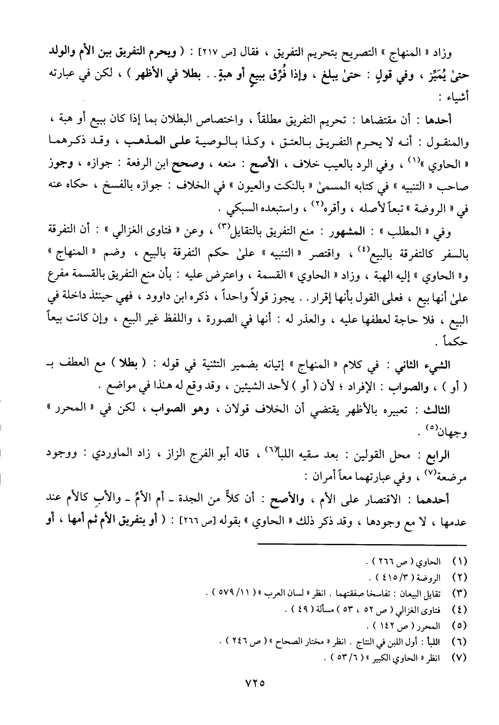 وزاد "المنهاج" التصريح بتحريم التفريق، فقال [ص 217]: (ويحرم التفريق بين الأم والولد حتى يُمَيِّز، وفي قولٍ: حتى يبلغ، وإذا فُرِّق ببيعٍ أو هبةٍ .. بطلا في الأظهر)، لكن في عبارته أشياء: