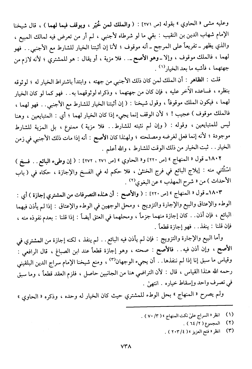 1802 - قول "المنهاج" [ص 220] و"الحاوي" [ص 271، 272]: (إن وطئ البائع .. فسخ) اسْتثُني منه: إيلاج البائع في فرج الخنثى، فلا حكم له في الفسخ والإجازة، حكاه في (باب الأحداث) من "شرح المهذب" عن البغوي (¬2).