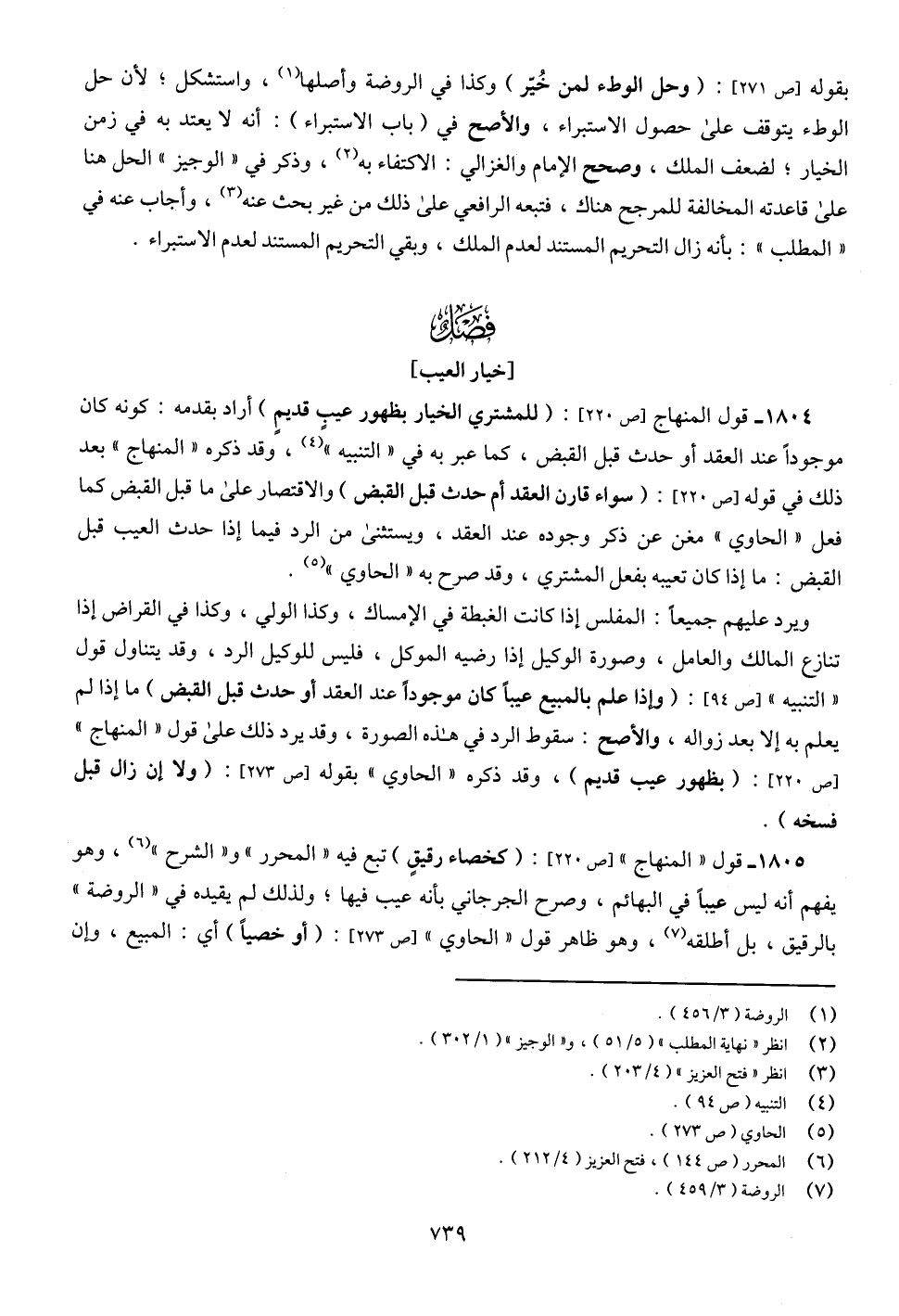 1805 - قول "المنهاج" [ص 220]: (كخصاء رقيقٍ) تبع فيه "المحرر" و"الشرح" (¬6)، وهو يفهم أنه ليس عيباً في البهائم، وصرح الجرجاني بأنه عيب فيها؛ ولذلك لم يقيده في "الروضة" بالرقيق، بل أطلقه (¬7)، وهو ظاهر قول "الحاوي" [ص 273]: (أو خصياً) أي: المبيع، وإن