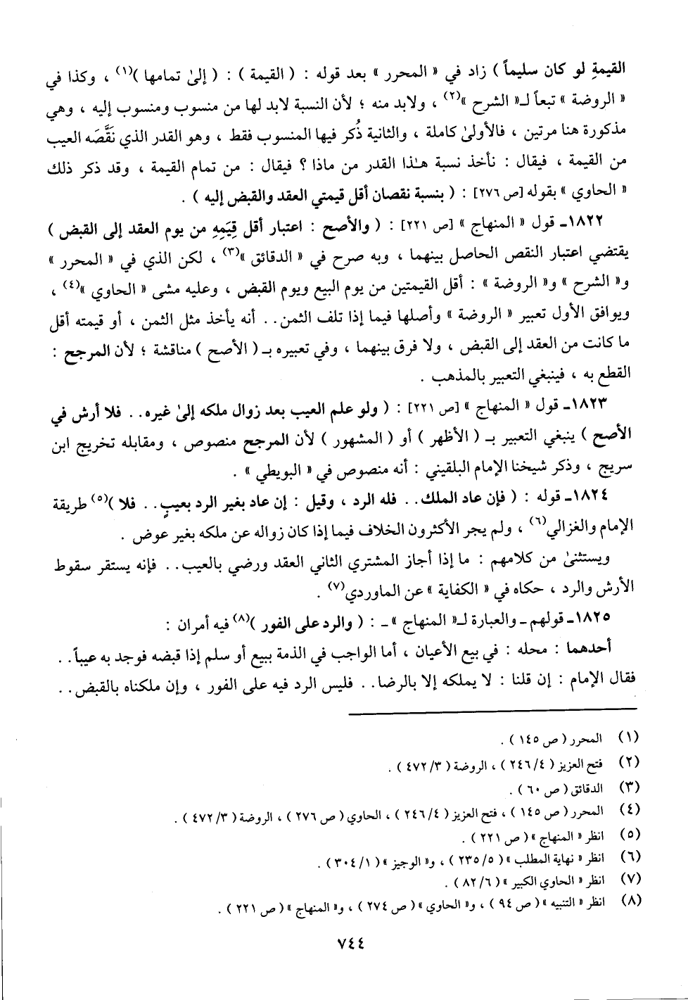 1823 - قول "المنهاج" [ص 221]: (ولو علم العيب بعد زوال ملكه إلى غيره .. فلا أرش في الأصح) ينبغي التعبير بـ (الأظهر) أو (المشهور) لأن المرجح منصوص، ومقابله تخريج ابن سريج، وذكر شيخنا الإمام البلقيني: أنه منصوص في "البويطي".