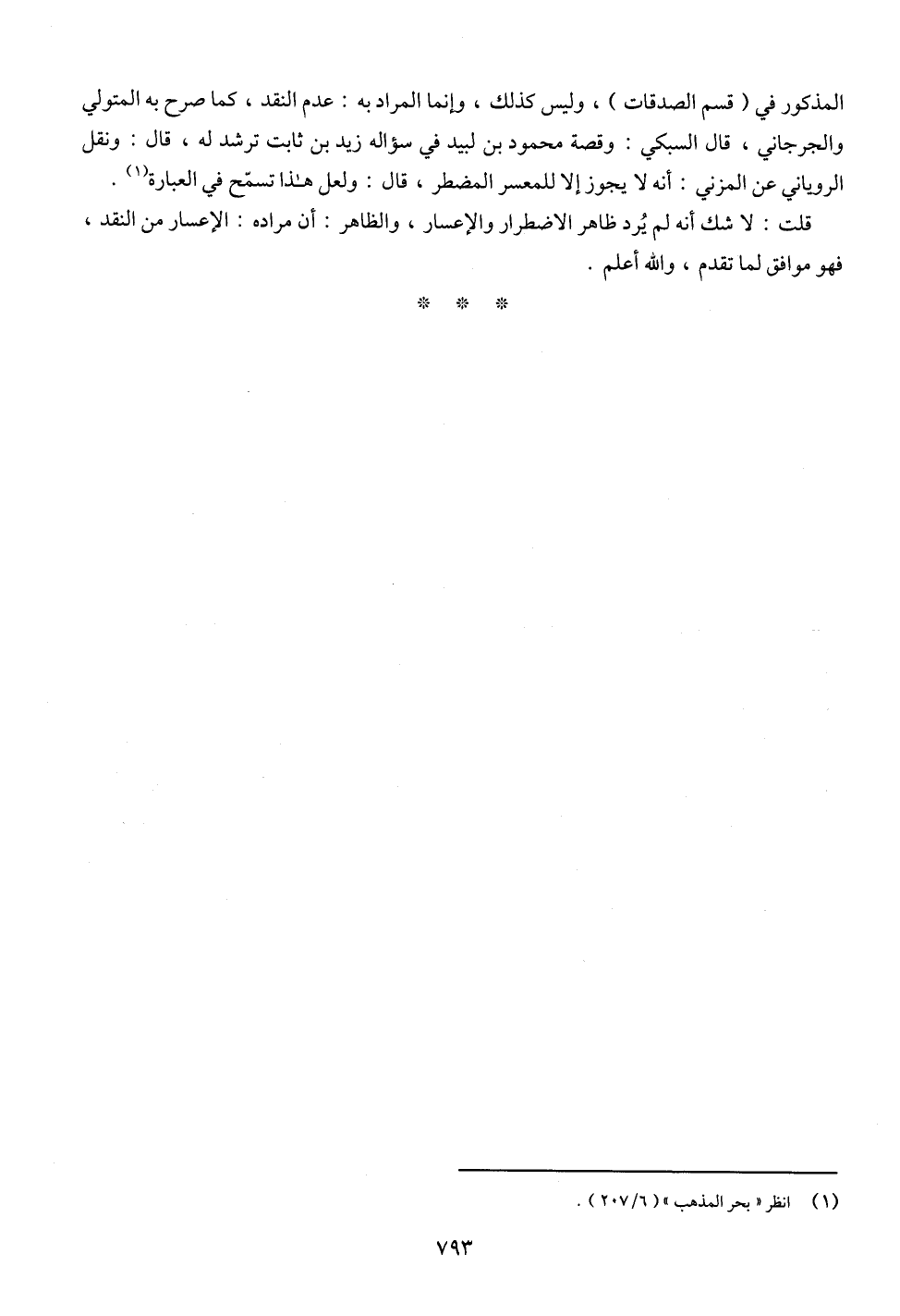 المذكور في (قسم الصدقات)، وليس كذلك، وإنما المراد به: عدم النقد، كما صرح به المتولي والجرجاني، قال السبكي: وقصة محمود بن لبيد في سؤاله زيد بن ثابت ترشد له، قال: ونقل الروياني عن المزني: أنه لا يجوز إلا للمعسر المضطر، قال: ولعل هذا تسمّح في العبارة (¬1).