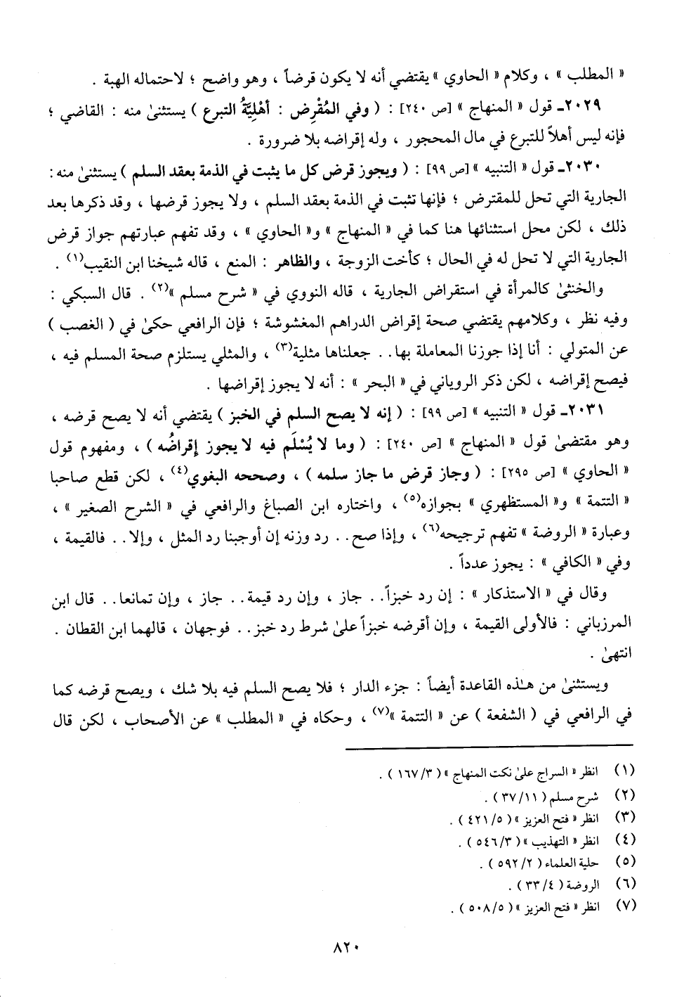 2030 - قول "التنبيه" [ص 99]: (ويجوز قرض كل ما يثبت في الذمة بعقد السلم) يستثنى منه: الجارية التي تحل للمقترض؛ فإنها تثبت في الذمة بعقد السلم، ولا يجوز قرضها، وقد ذكرها بعد ذلك، لكن محل استثنائها هنا كما في "المنهاج" و"الحاوي"، وقد تفهم عبارتهم جواز قرض الجارية التي لا تحل له في الحال؛ كأخت الزوجة، والظاهر: المنع، قاله شيخنا ابن النقيب (¬1).