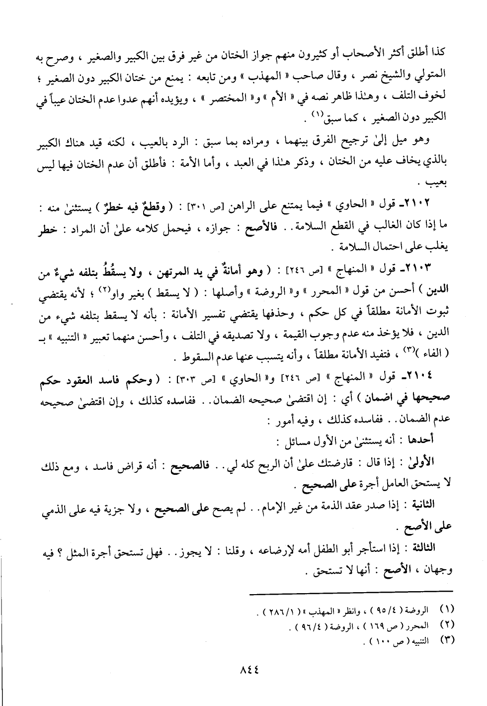 2104 - قول "المنهاج" [ص 246] و"الحاوي" [ص 303]: (وحكم فاسد العقود حكم صها في اضمان) أي: إن اقتضى صحيحه الضمان .. ففاسده كذلك، وإن اقتضى صحيحه عدم الضمان .. ففاسده كذلك، وفيه أمور: