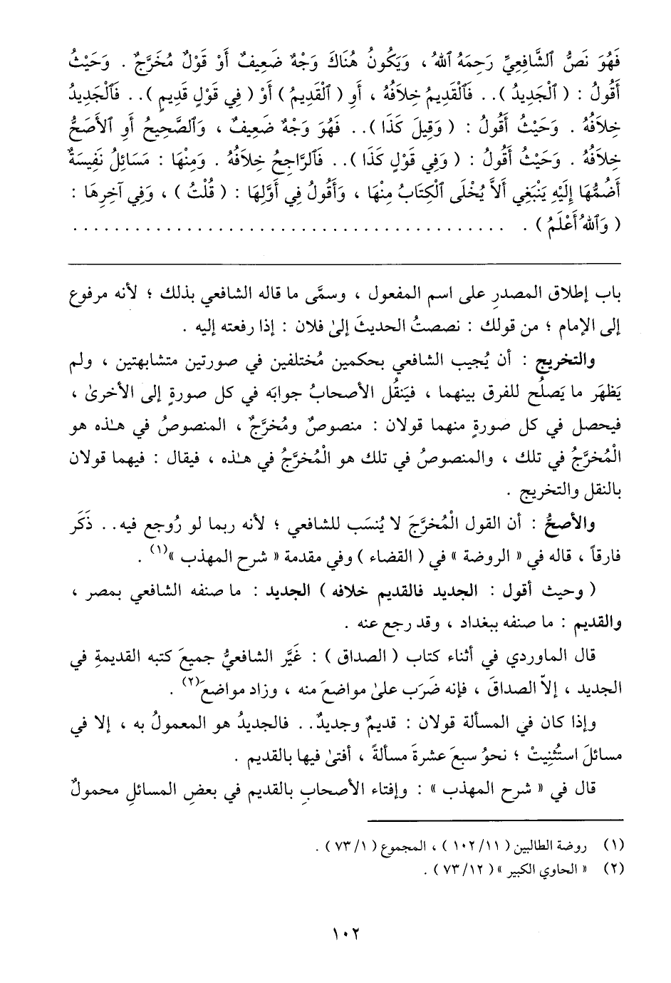 (١) روضة الطالبين (١١/ ١٠٢)، المجموع (١/ ٧٣).