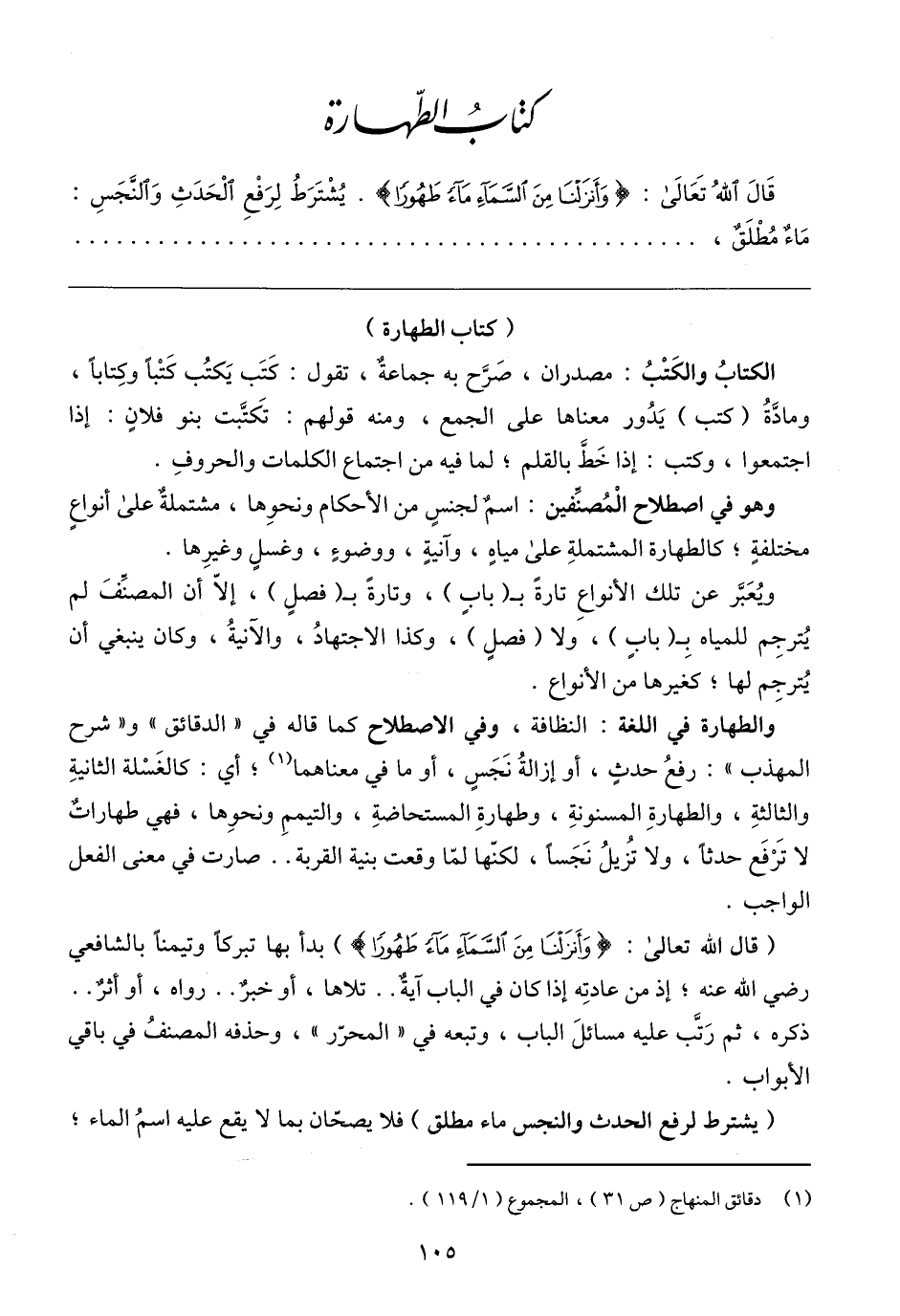 (١) دقائق المنهاج (ص ٣١)، المجموع (١/ ١١٩).