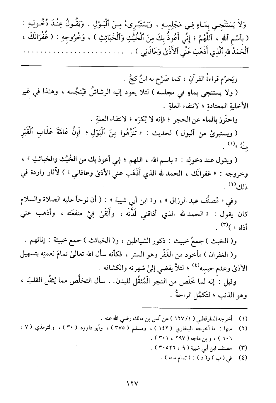 (١) أخرجه الدارقطني (١/ ١٢٧) عن أنس بن مالك رضي الله عنه.