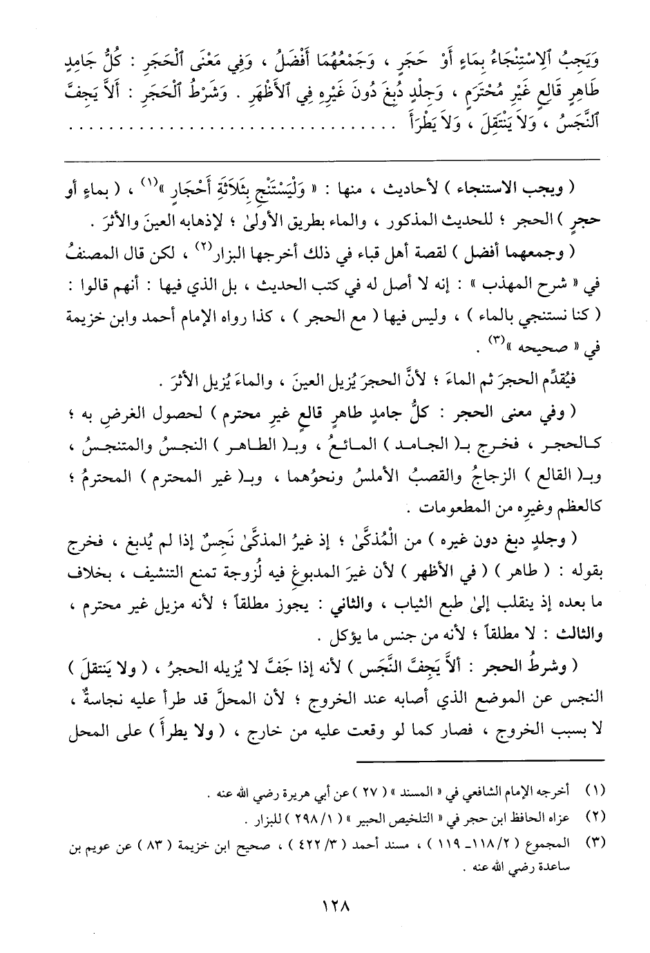 (٣) المجموع (٢/ ١١٨ - ١١٩)، مسند أحمد (٣/ ٤٢٢)، صحيح ابن خزيمة (٨٣) عن عويم بن ساعدة رضي الله عنه.
