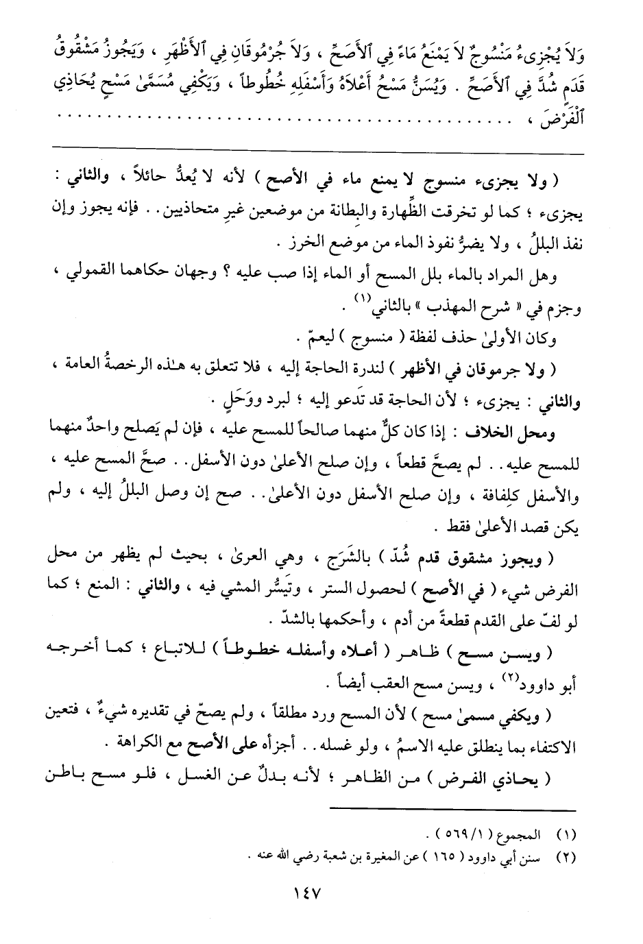 (٢) سنن أبي داوود (١٦٥) عن المغيرة بن شعبة رضي الله عنه.