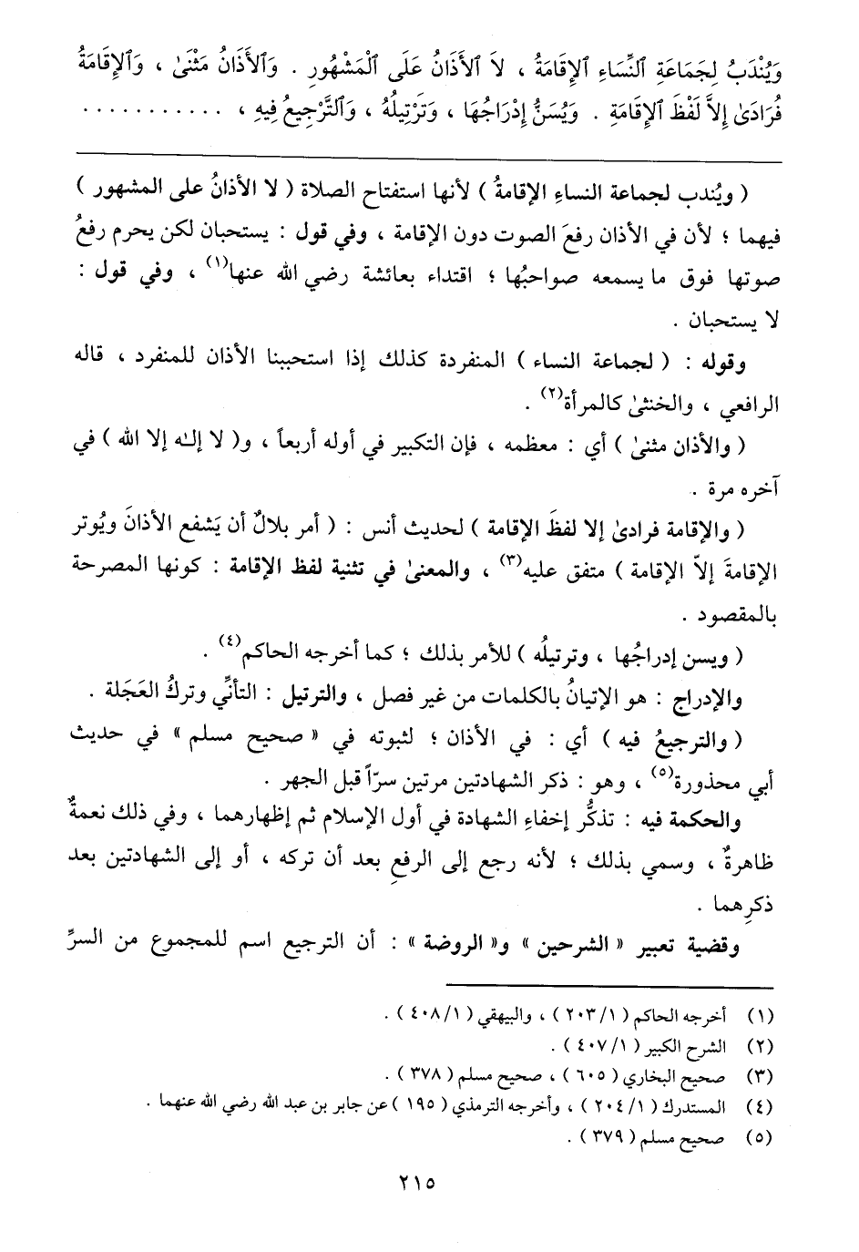 (والترجيعُ فيه) أي: في الأذان؛ لثبوته في "صحيح مسلم" في حديث أبي محذورة (٥)، وهو: ذكر الشهادتين مرتين سرًّا قبل الجهر.