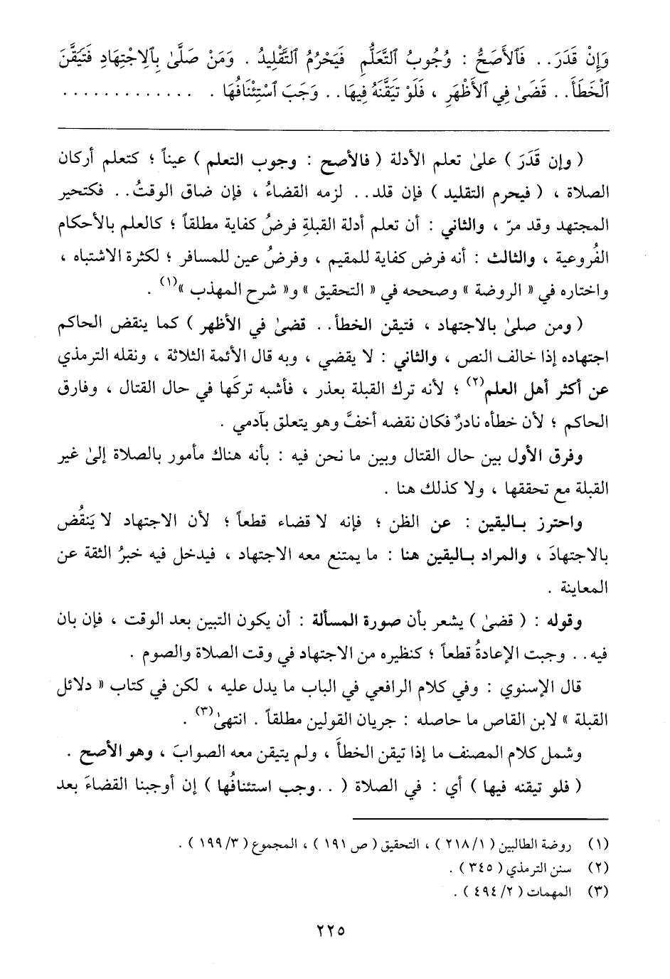 (١) روضة الطالبين (١/ ٢١٨)، التحقيق (ص ١٩١)، المجموع (٣/ ١٩٩).