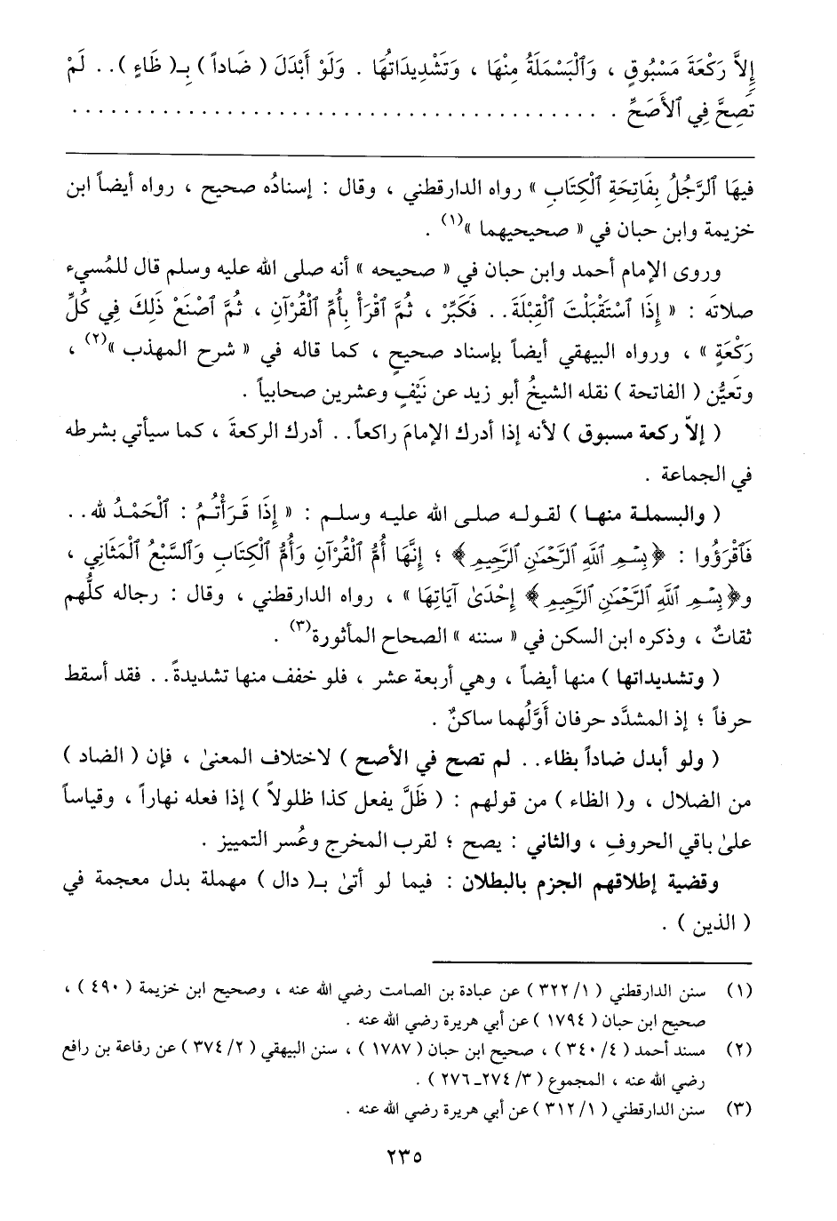 (١) سنن الدارقطني (١/ ٣٢٢) عن عبادة بن الصامت رضي الله عنه، وصحيح ابن خزيمة (٤٩٠)، صحيح ابن حبان (١٧٩٤) عن أبي هريرة رضي الله عنه.