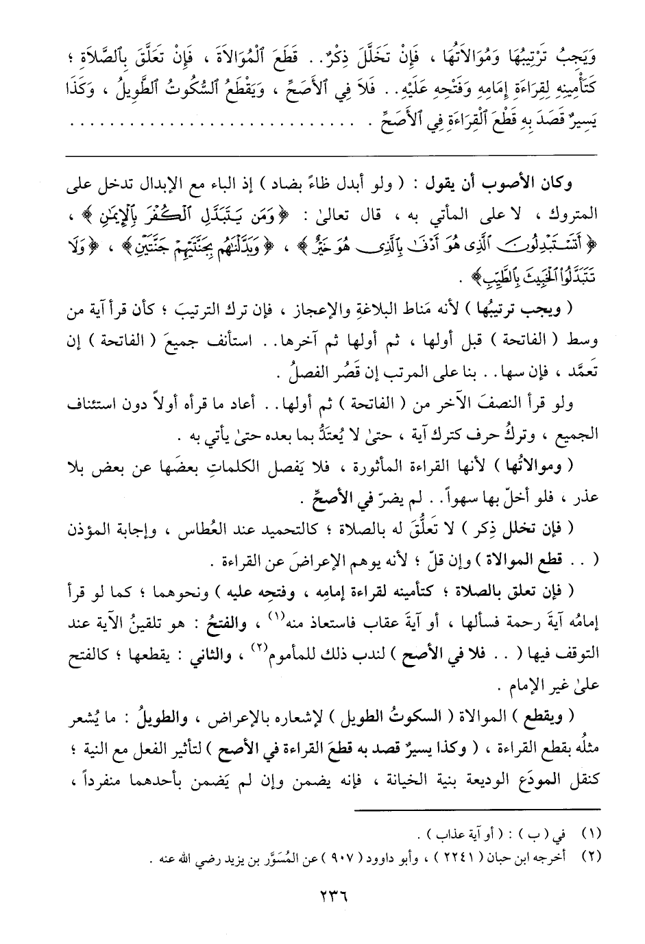 (٢) أخرجه ابن حبان (٢٢٤١)، وأبو داوود (٩٠٧) عن المُسَوَّر بن يزيد رضي الله عنه.
