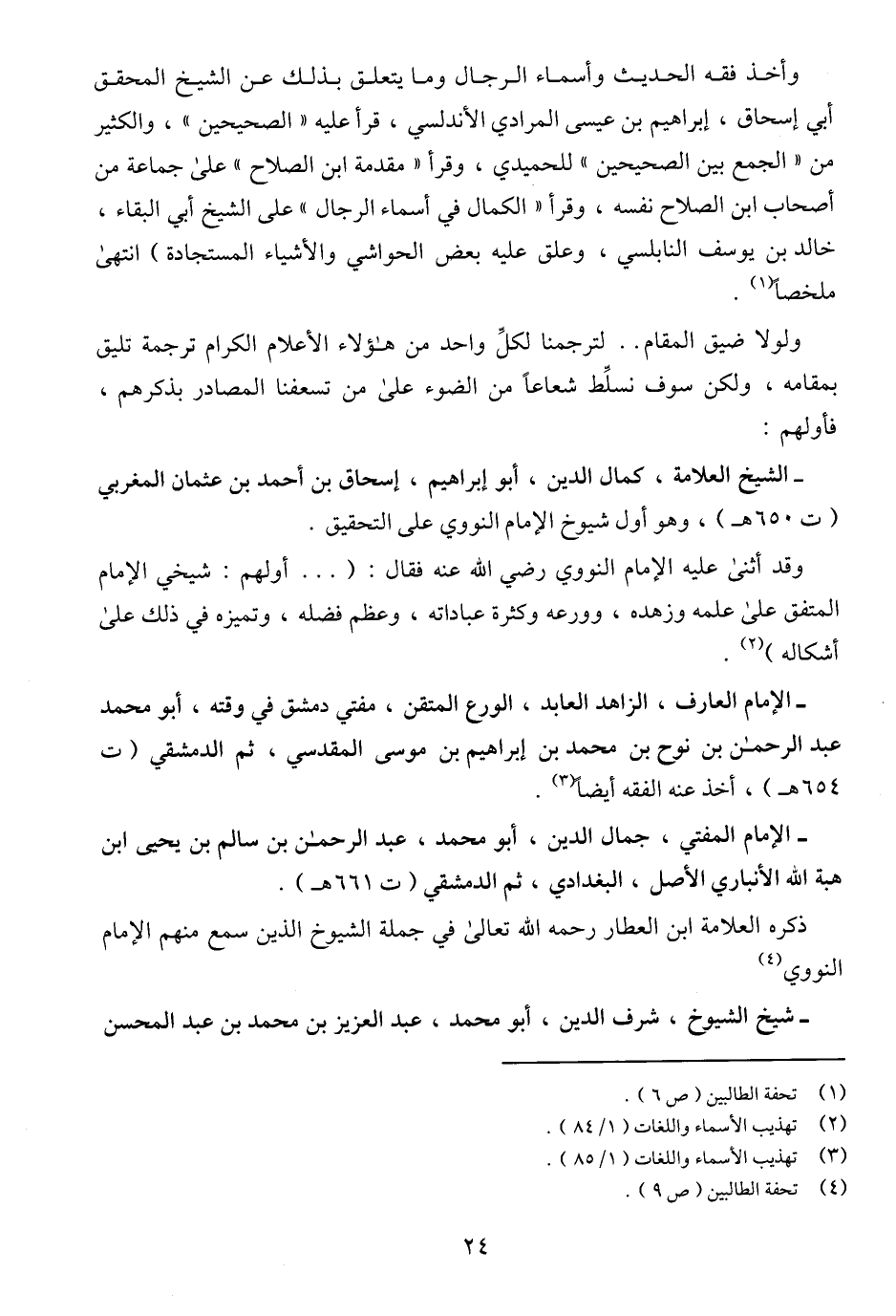 - الشيخ العلامة، كمال الدين، أبو إبراهيم، إسحاق بن أحمد بن عثمان المغربي (ت ٦٥٠ هـ)، وهو أول شيوخ الإمام النووي على التحقيق.