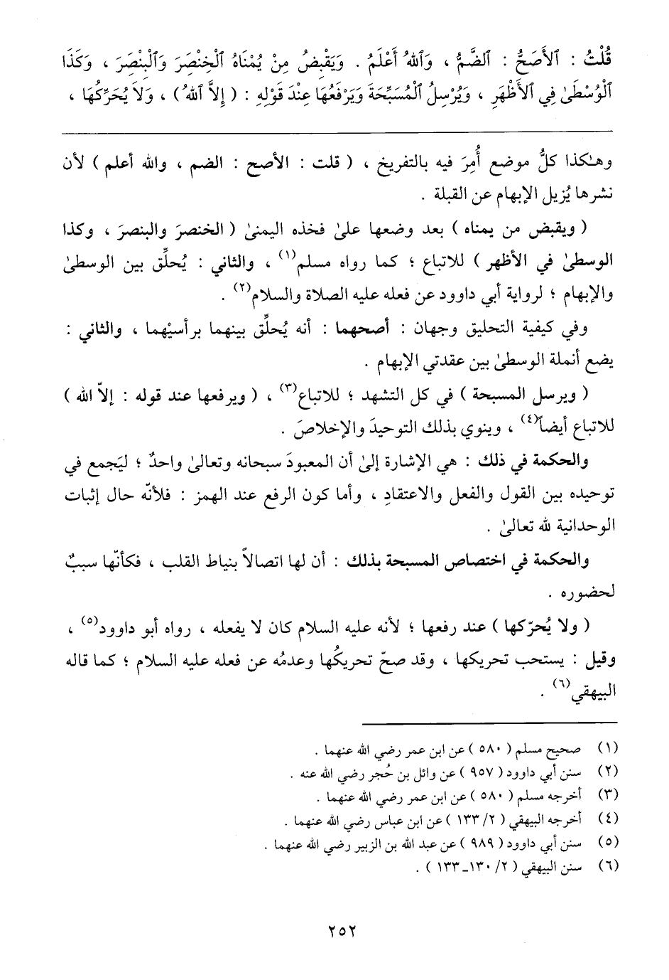 وهكذا كلُّ موضع أُمِرَ فيه بالتفريخ، (قلت: الأصح: الضم، والله أعلم) لأن نشرها يُزيل الإبهام عن القبلة.