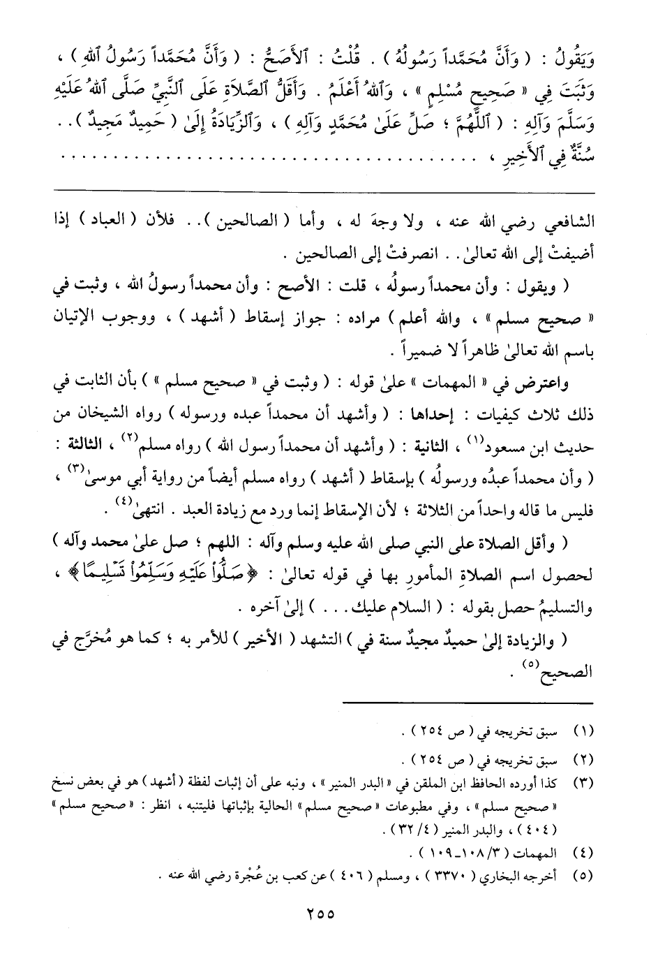 واعترض في "المهمات" على قوله: (وثبت في "صحيح مسلم") بأن الثابت في ذلك ثلاث كيفيات: إحداها: (وأشهد أن محمدًا عبده ورسوله) رواه الشيخان من حديث ابن مسعود (١)، الثانية: (وأشهد أن محمدًا رسول الله) رواه مسلم (٢)، الثالثة: (وأن محمدًا عبدُه ورسولُه) بإسقاط (أشهد) رواه مسلم أيضًا من رواية أبي موسى (٣)، فليس ما قاله واحدًا من الثلاثة؛ لأن الإسقاط إنما ورد مع زيادة العبد. انتهى (٤).