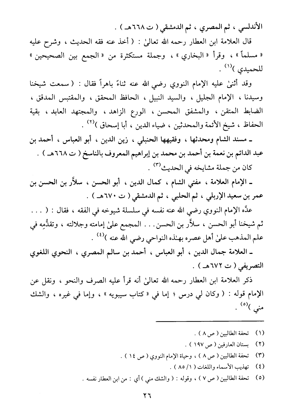 (٣) تحفة الطالبين (ص ٨)، وحياة الإمام النووي (ص ١٤).